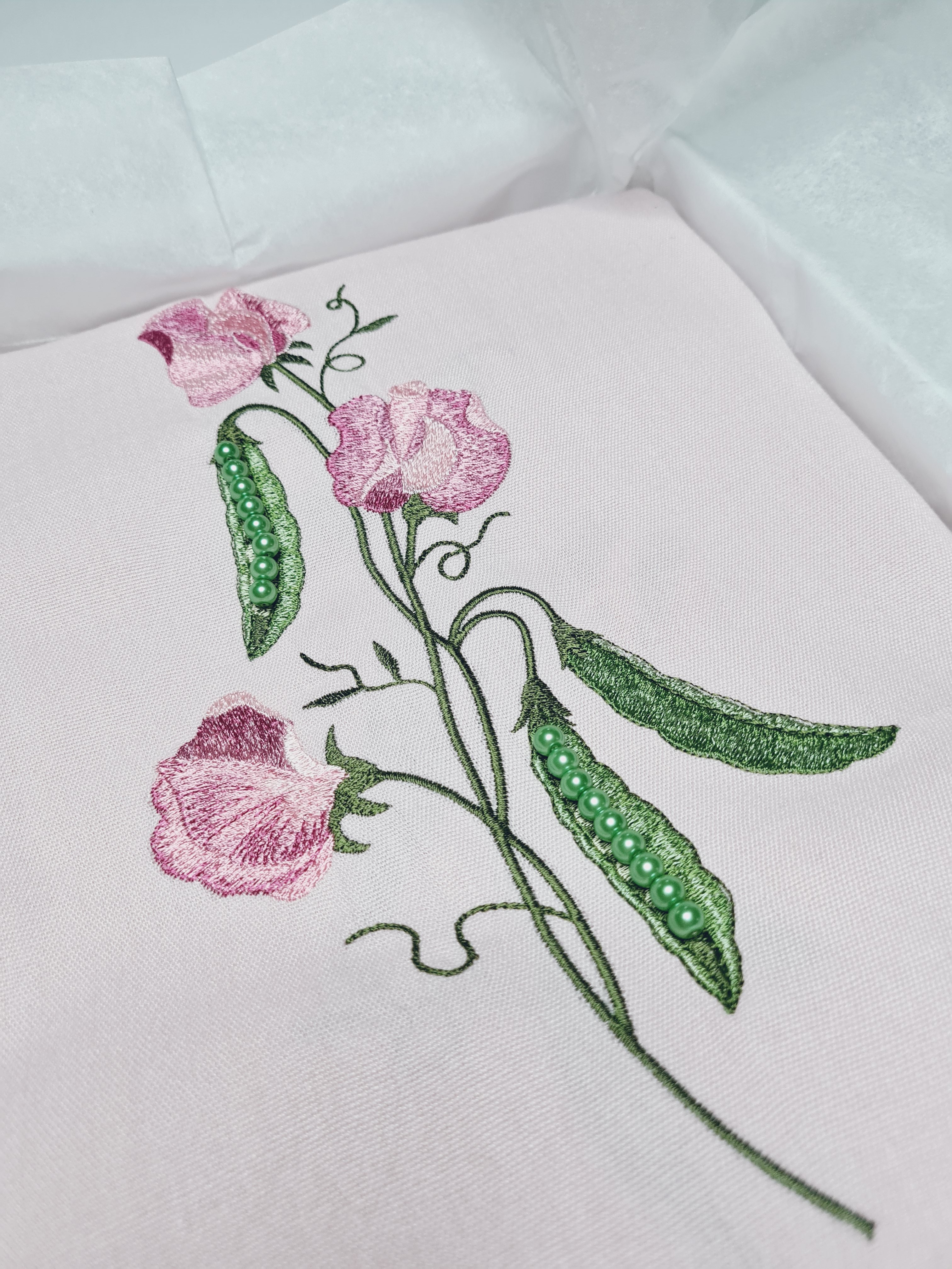 Создавайте уникальные образы и аксессуары, используя дизайны набора. По вашему желанию вы можете украсить горошек бисером, чтобы получить еще более шикарную и эксклюзивную вышивку.