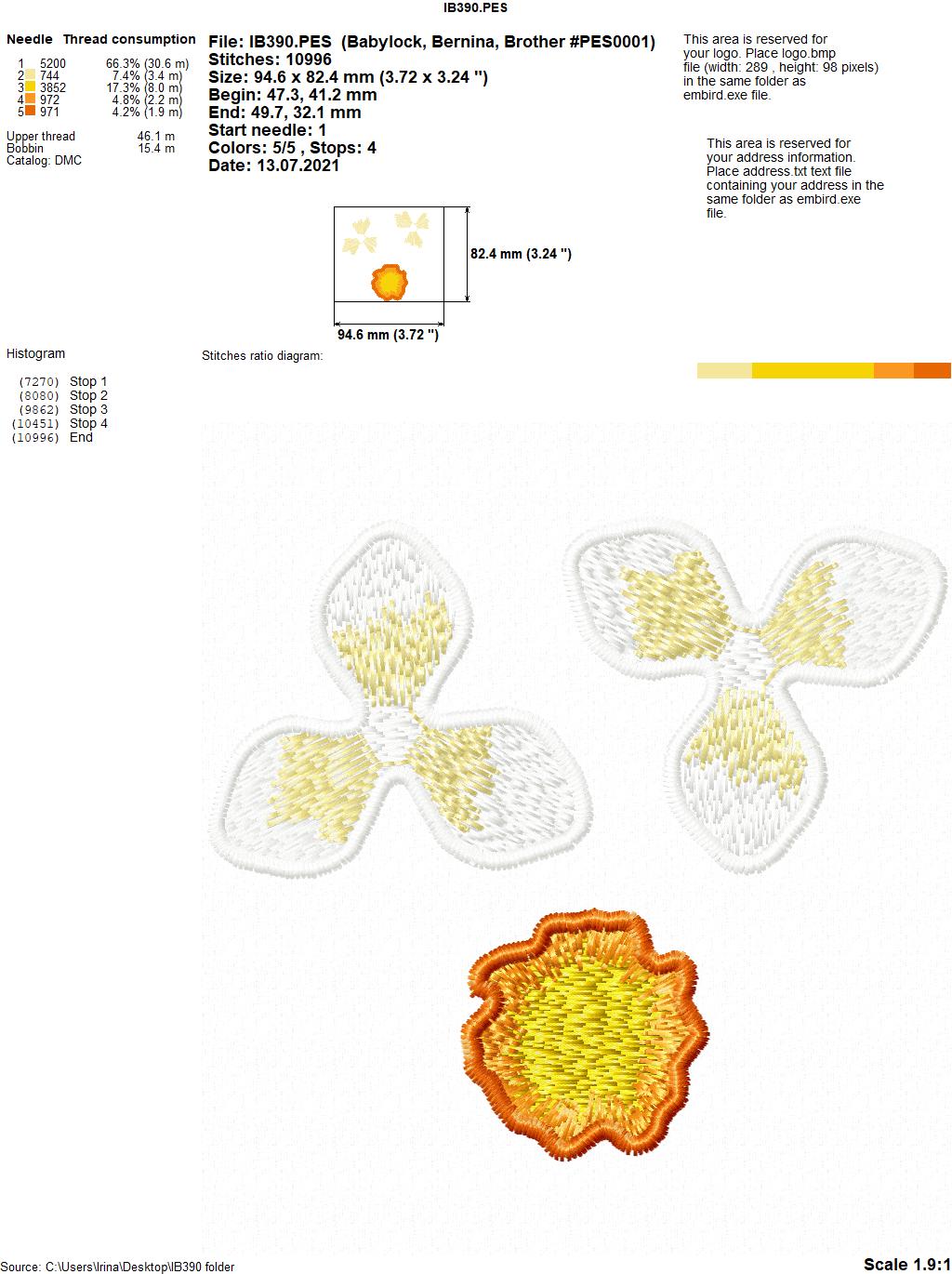 Размер дизайна IB390: 94,6 Х 75,6 мм (3,72 Х 2,98 дюйма)