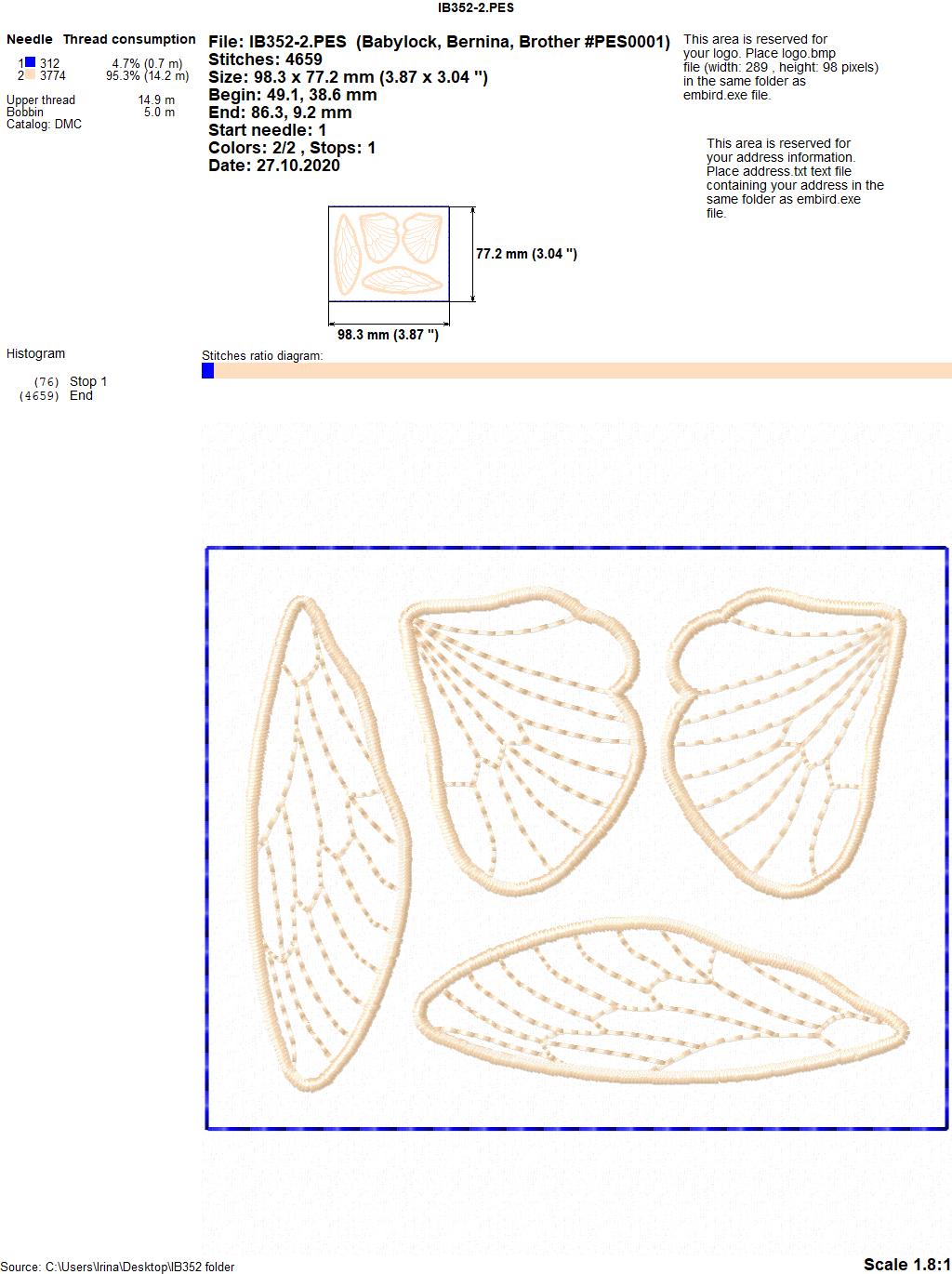 Размер дизайна IB352: 99,8 Х 68,6 мм(3,93 Х 2,70 дюйма )