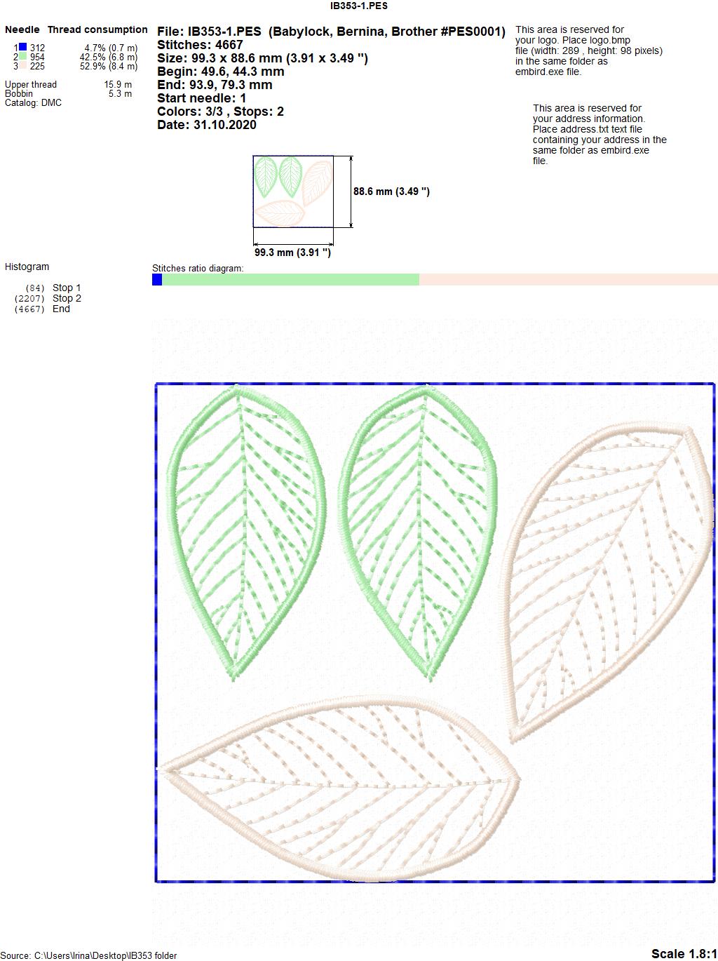 Размер дизайна IB353-1: 99,3 Х 88,6 мм(3,91 Х 3,49 дюйма )