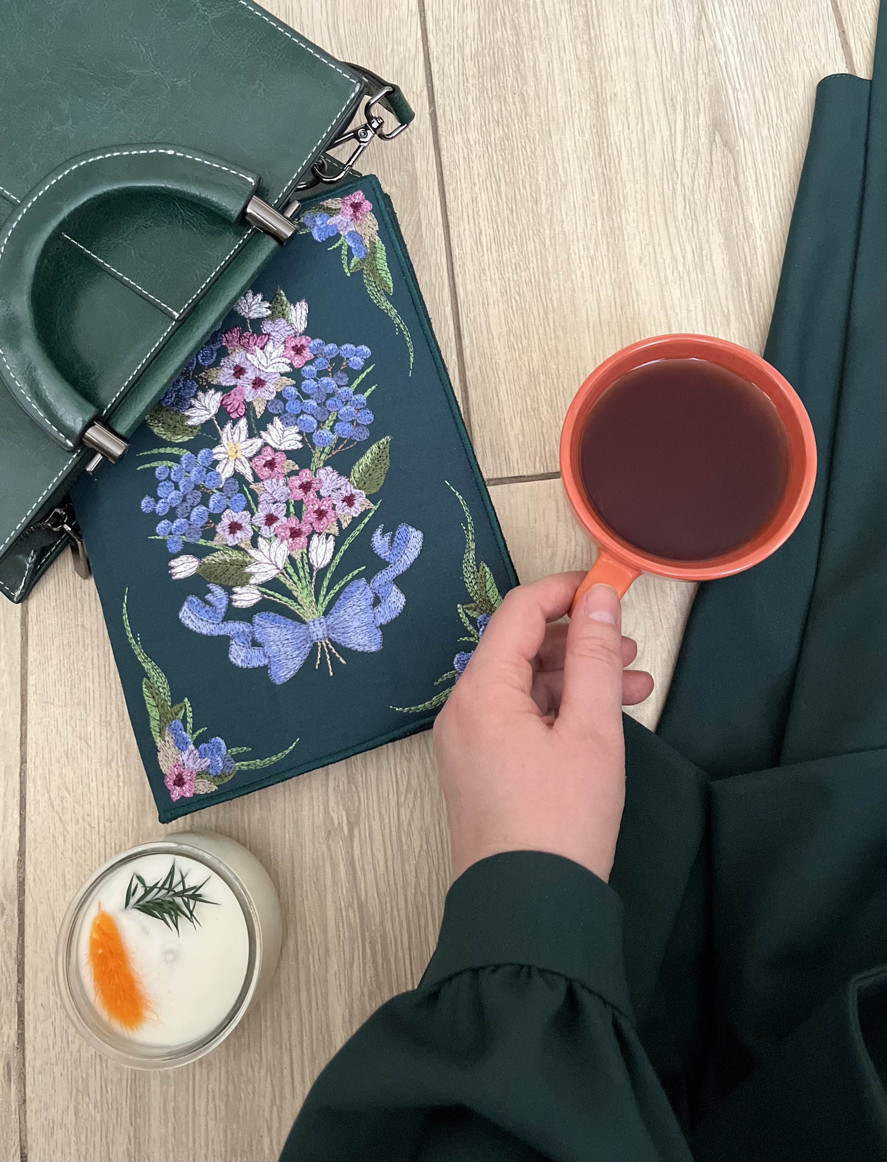 Дизайн для вышивки обложки планера формата А5, полностью в пяльцах. Дизайн состоит из двух частей, которые полностью вышиваются и собираются в пяльцах.