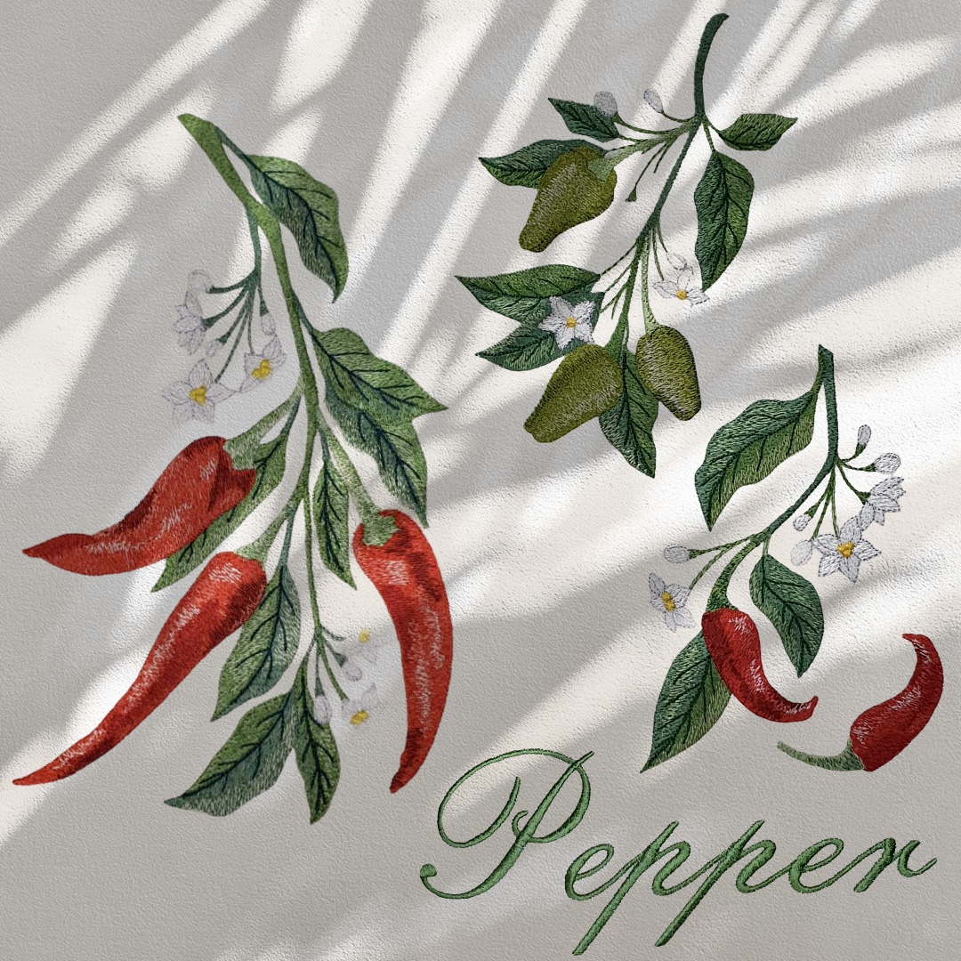 (Набор из 8 дизайнов: три веточки, надпись, четыре отдельных перчика)