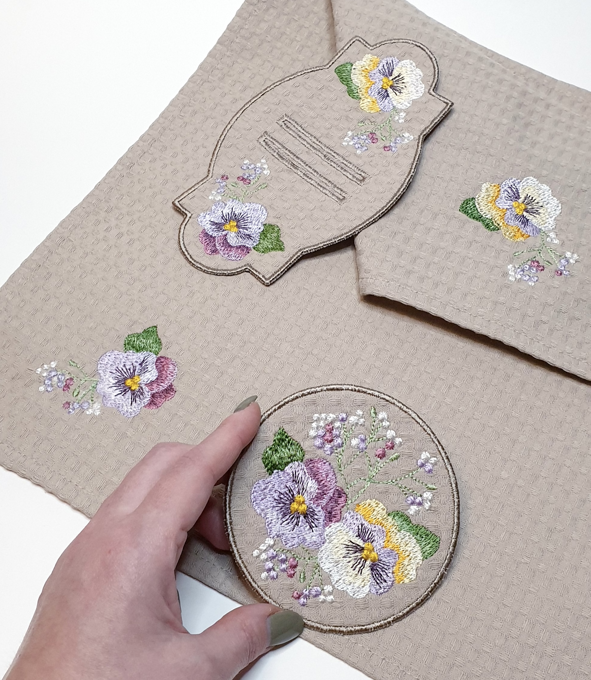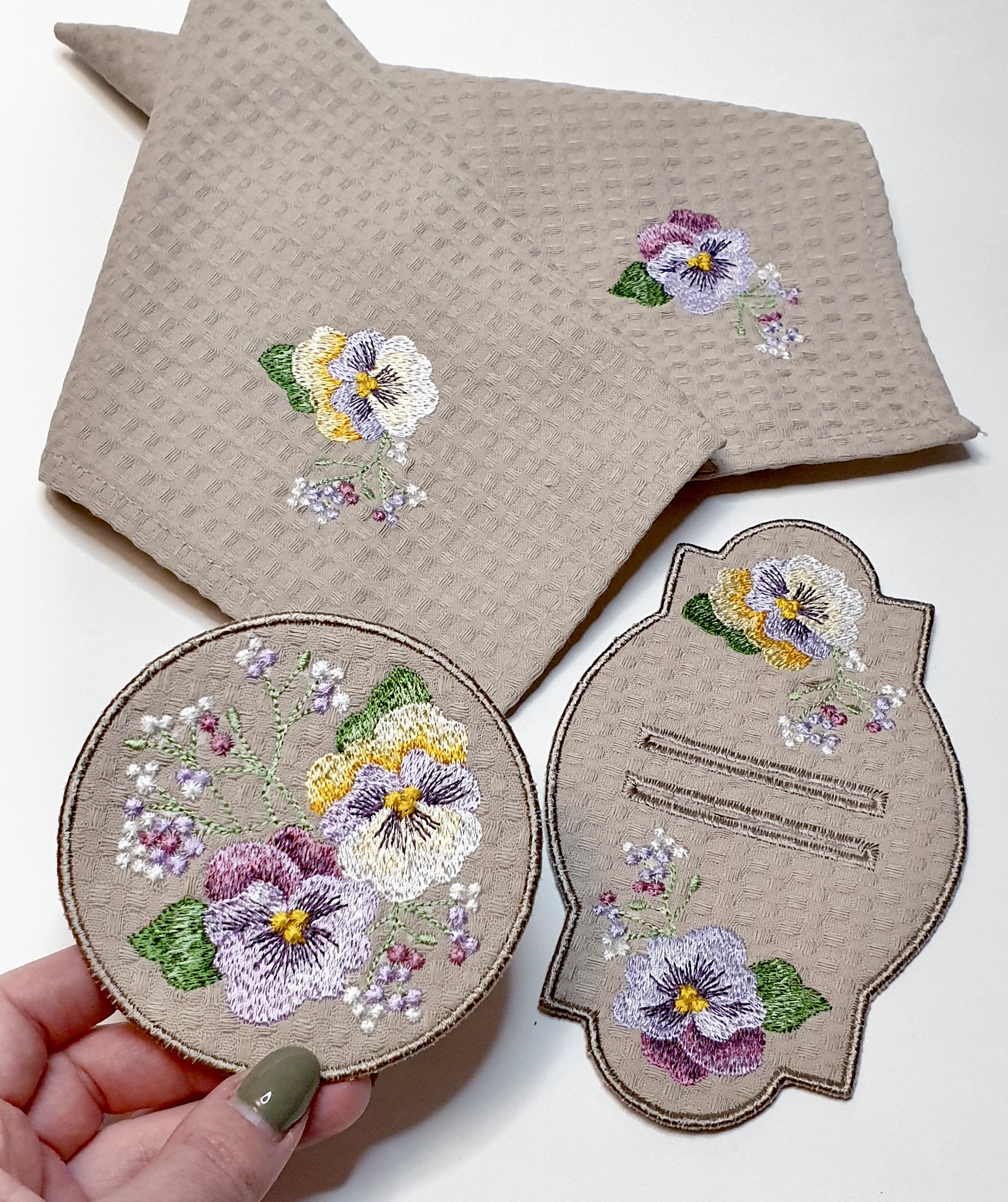 Pansies and gypsophila designs sеt plus a coaster and placemat for cutlery