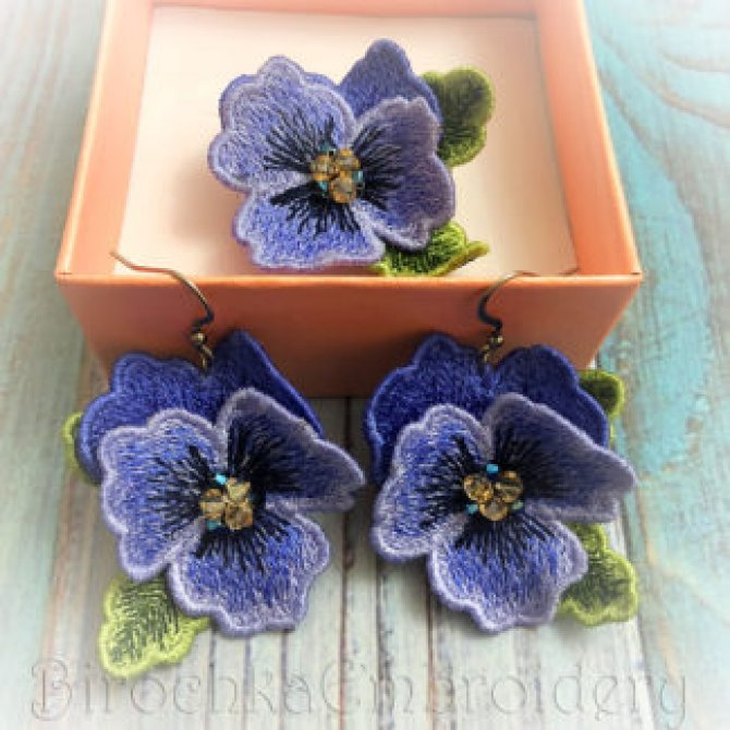 2. Pansies Jewelry FSL machine embroidery designs