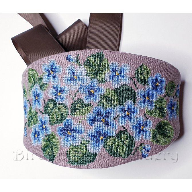Пояс Голубые фиалки Дизайн машинной вышивки