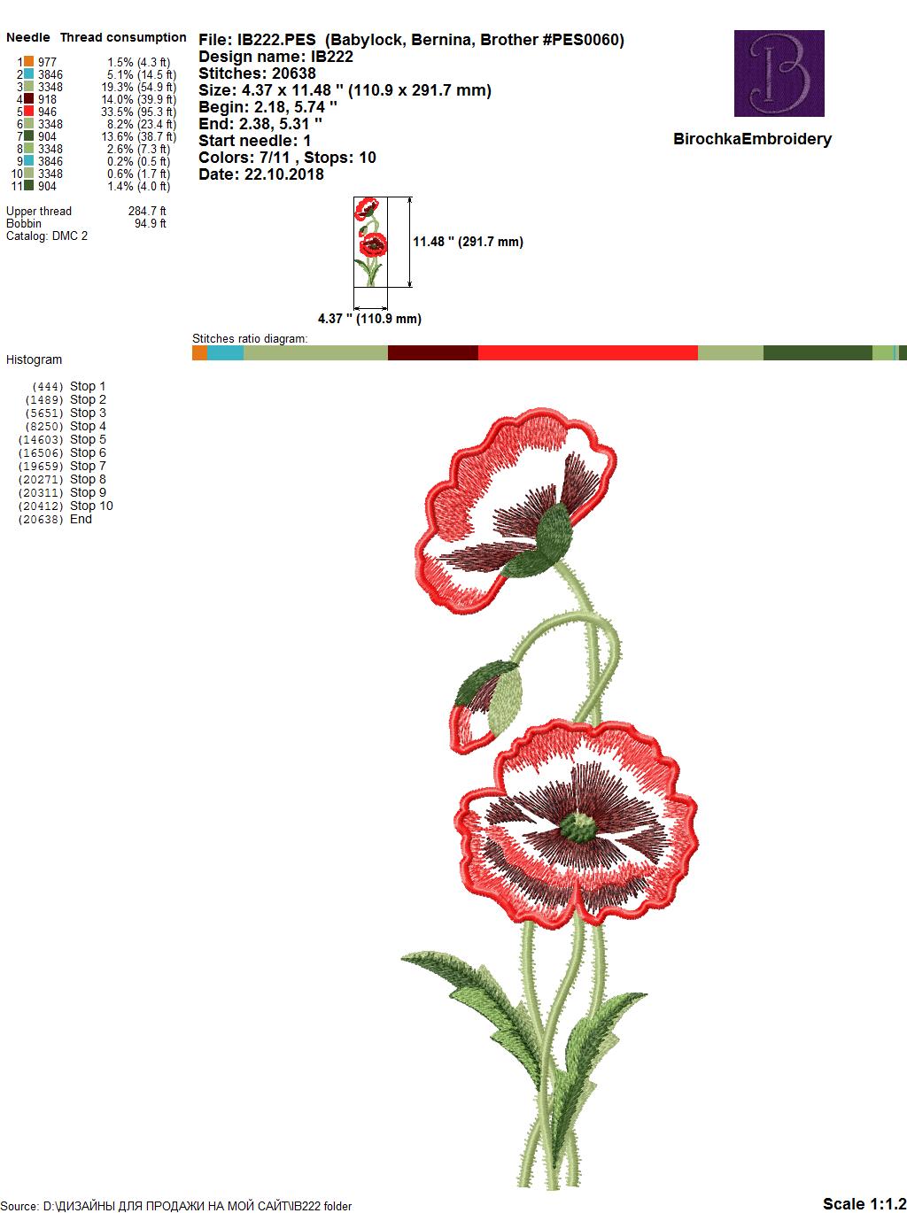 Design size for hoop: 180 Х 300 mm (7 X 11,8 inches), 200 X 260 mm (7,8 X 10 inches), and one separate flower for hoop 130 X 180 mm (5 X 7 inches)