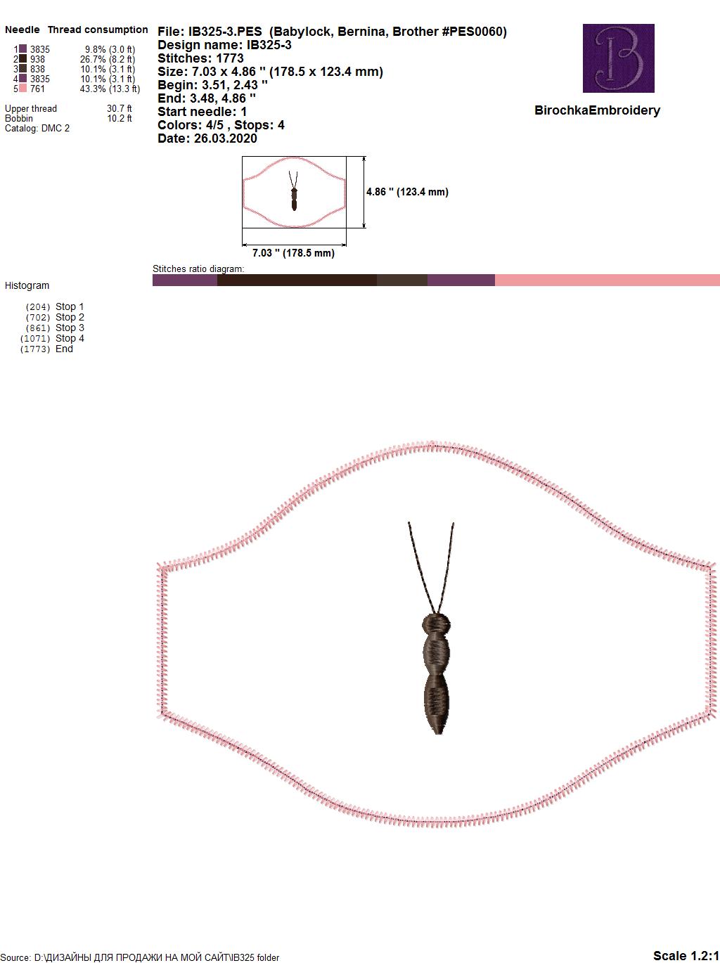 Design size IB325-2: 91,0 Х 44,2 mm (3,58 Х 1,74 inches )