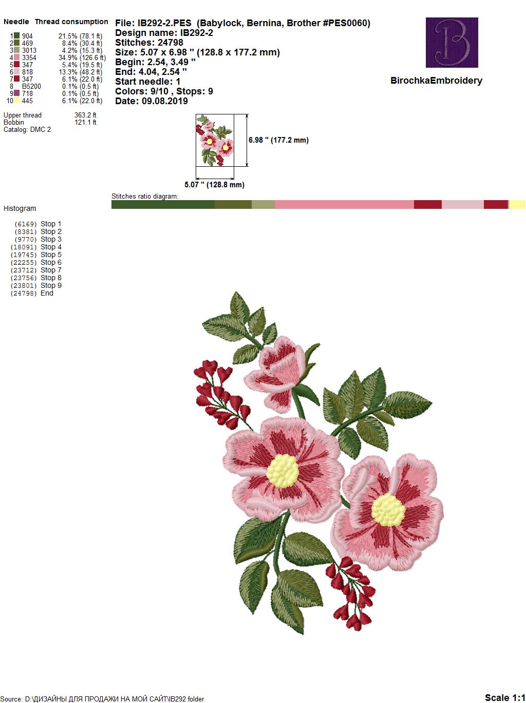 Design size IB292-1: 96,5 mm х 78,8 mm (3,80 х 3,10 inches )