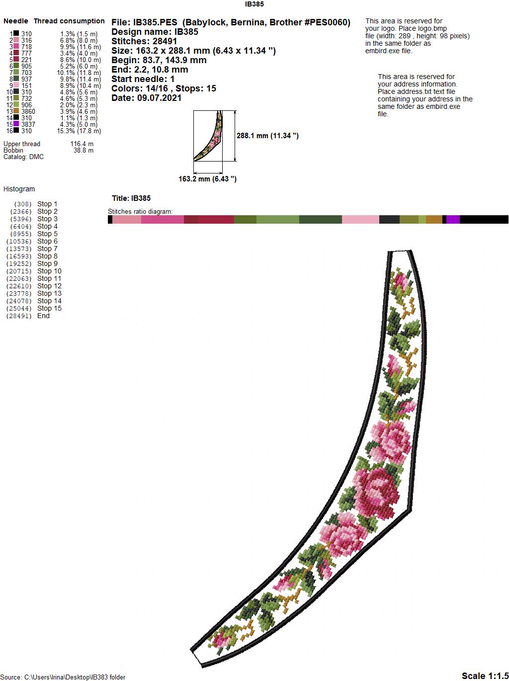 Design size IB385: 163,2 Х 288,1 mm (6,43Х 11,34 inches )