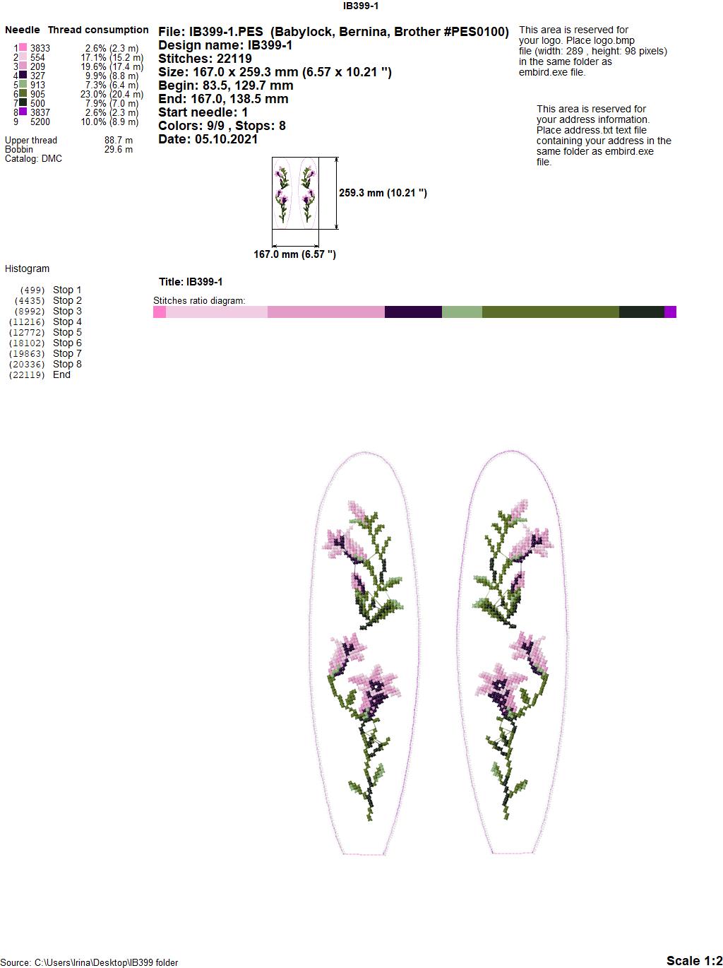 Formats : pes, hus, dst, jef, vp3, exp, xxx