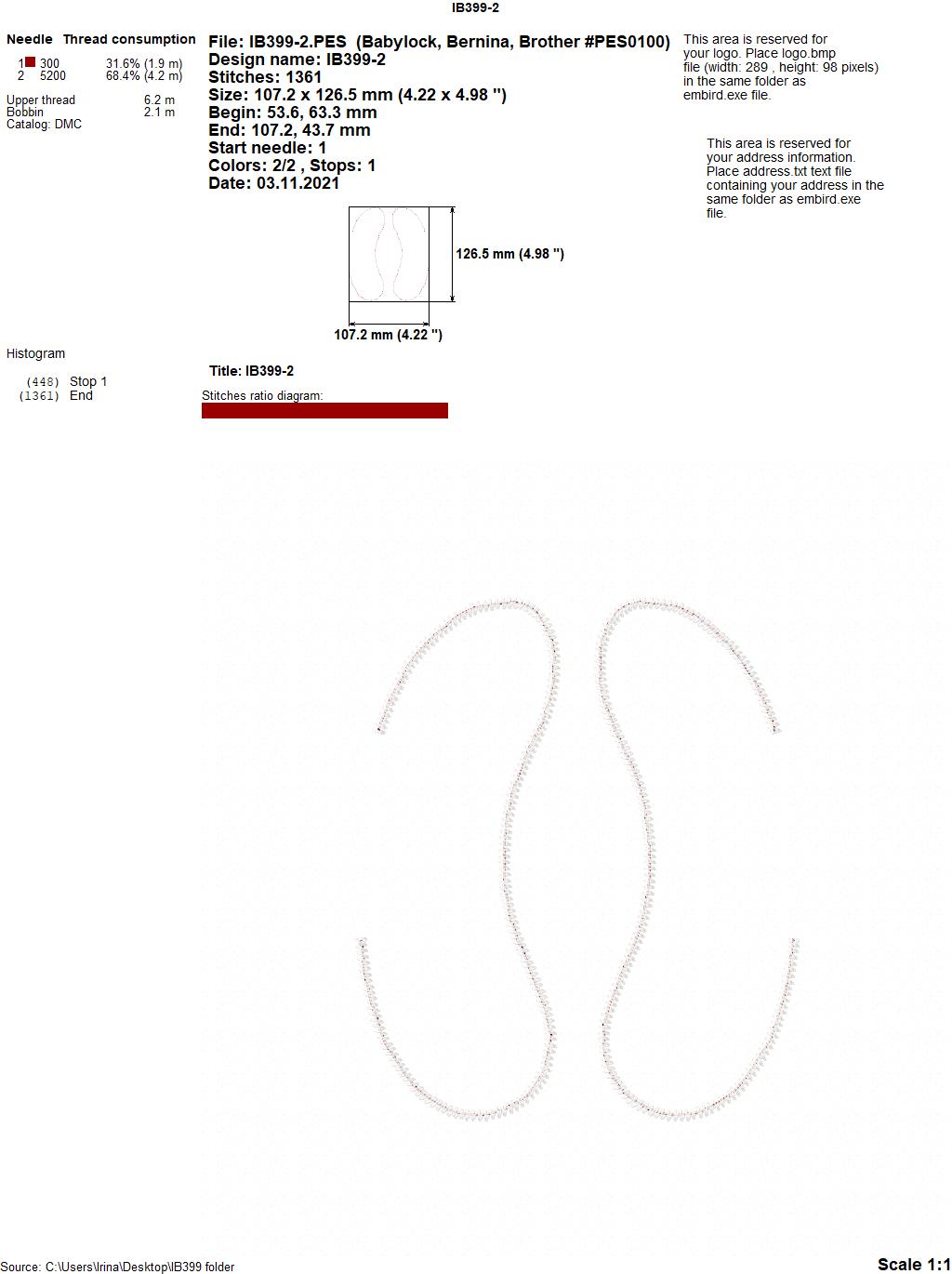 Size design IB399-2 (shoes): 113,6 Х 65,5 mm (4,47 x 2,58 inches)