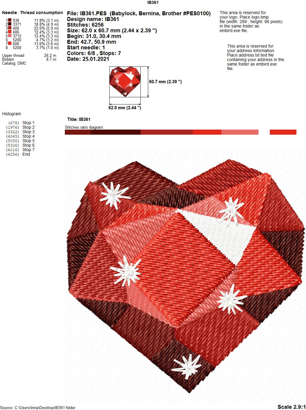Размер дизайна IB361: 62,0 Х 60,7 мм (2,44 Х 2,39 дюйма )