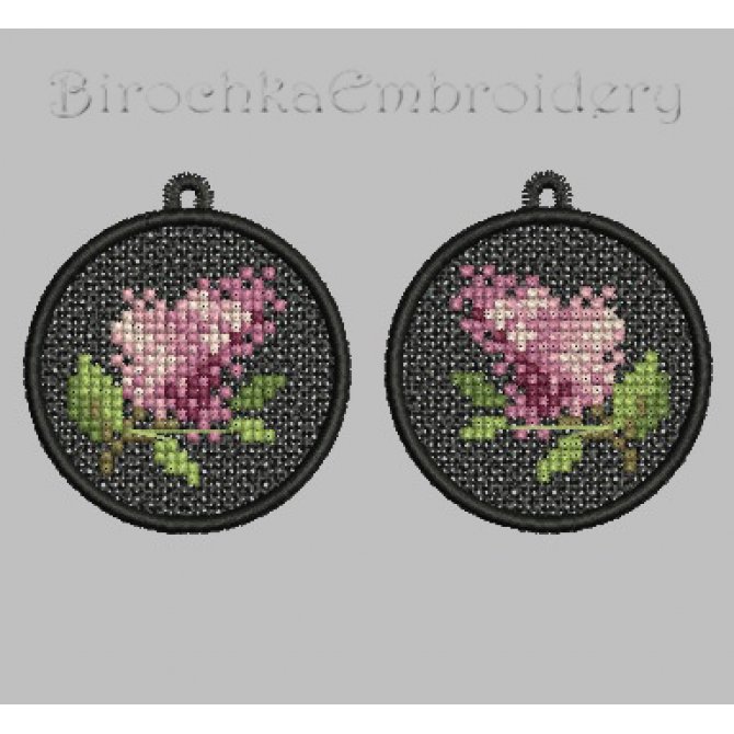 Серьги ФСЛ Сирень дизайн машинной вышивки