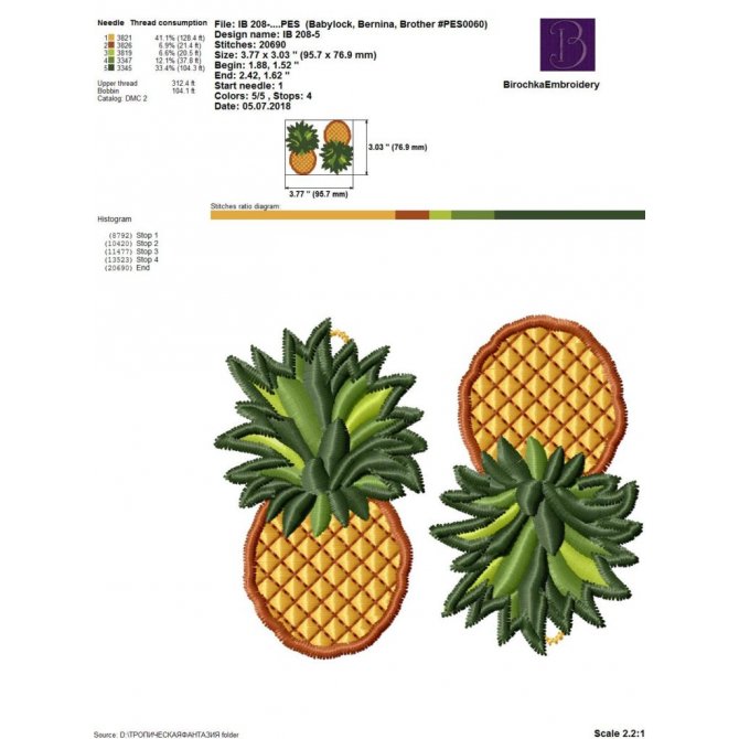 Размер дизайна брошь: 47,6 мм x 76,1 мм (1,87 х 3,39 дюйма)