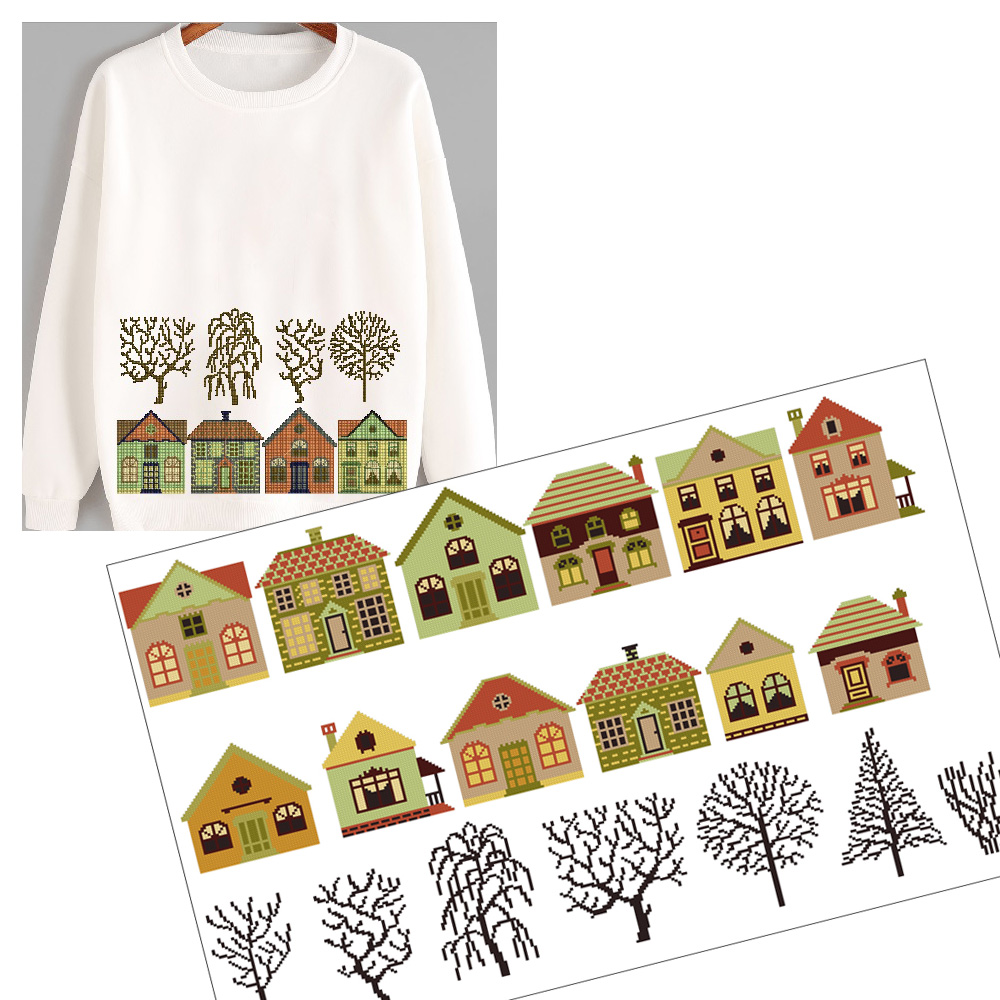 Set-constructor Houses and trees, French knot machine embroidery designs