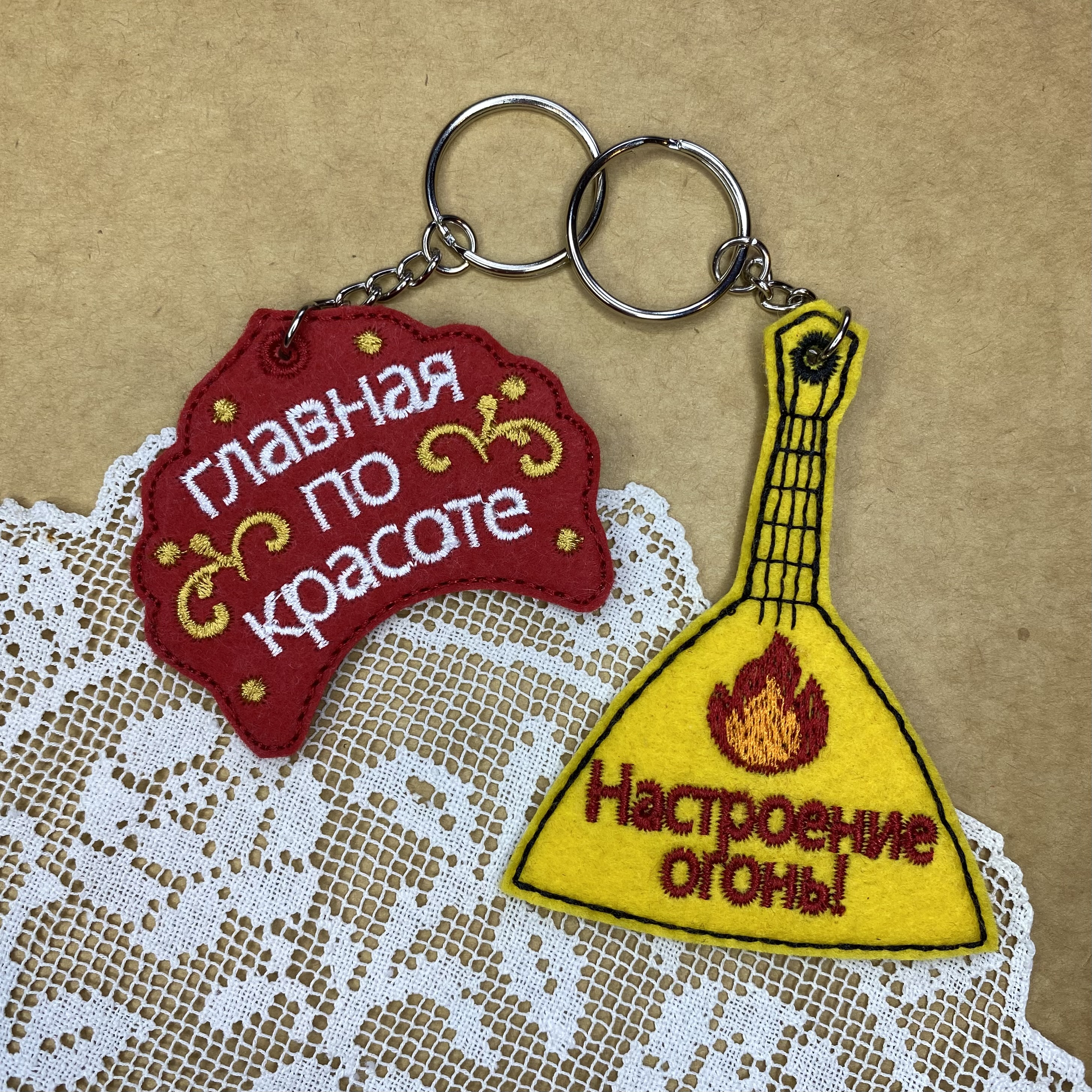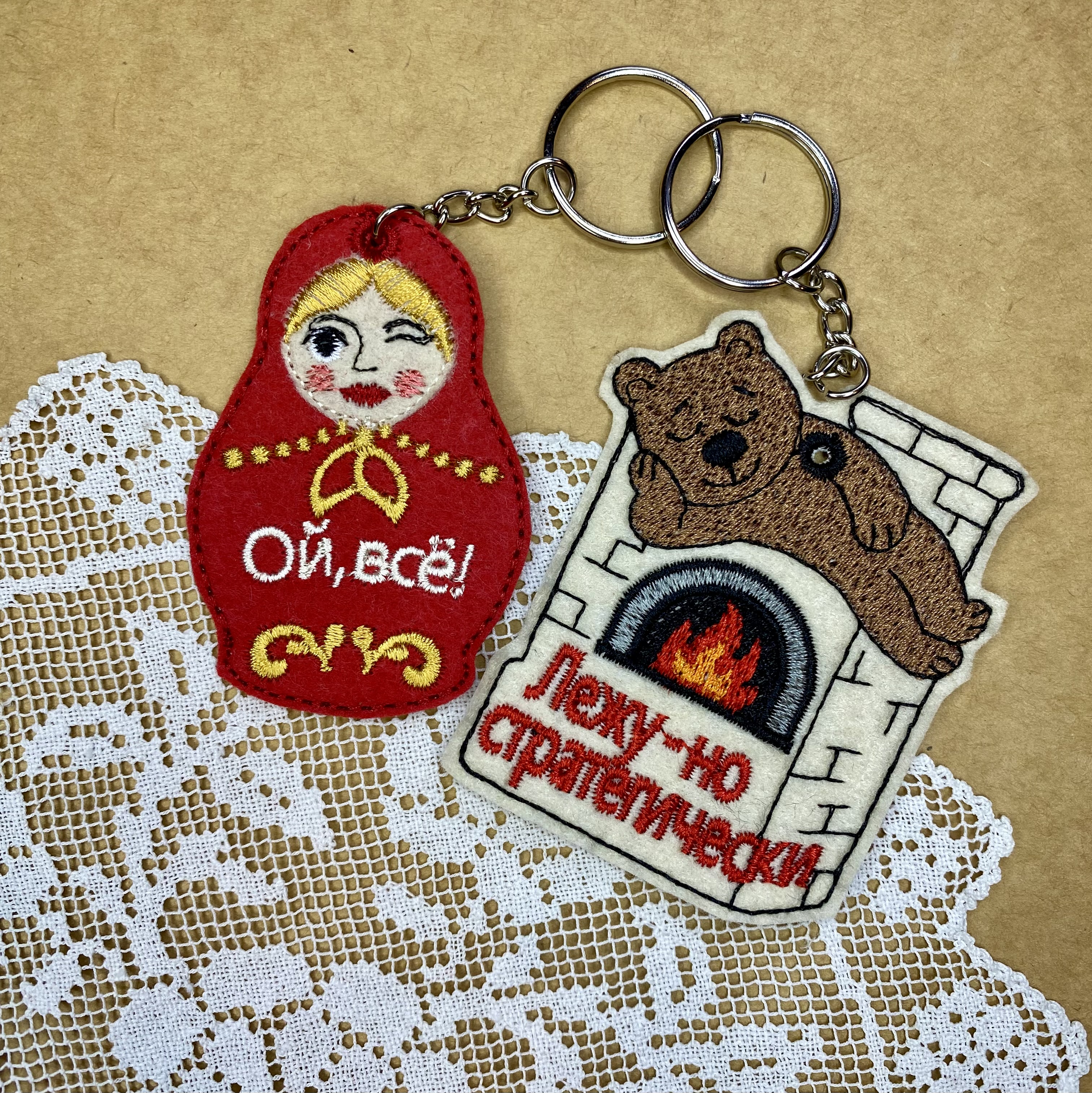 Set of 6 Russian-style keychains, machine embroidery designs
