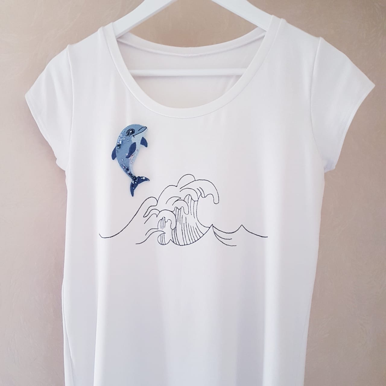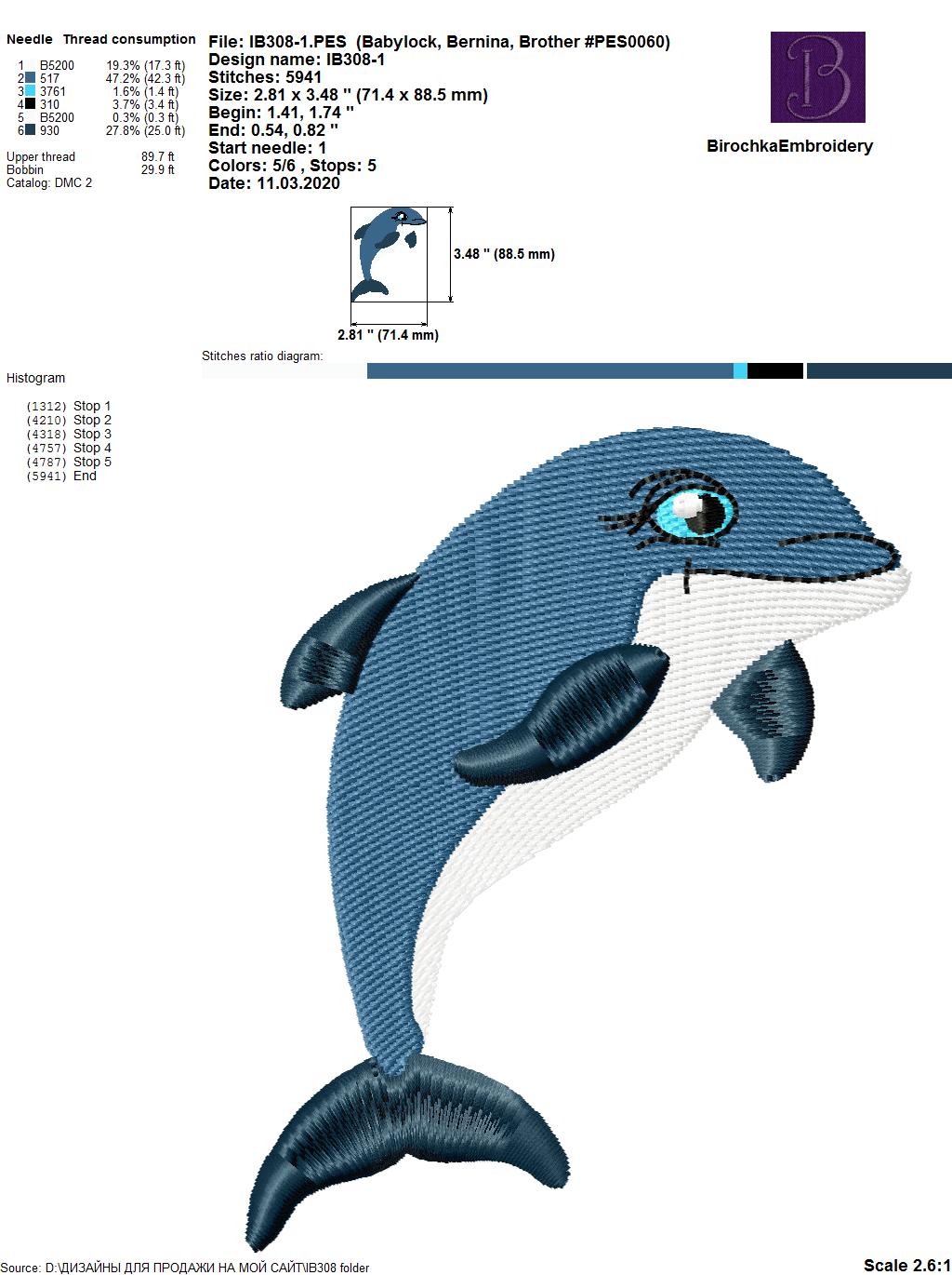 Design size IB308-1 (dolphin brooch) : 71,4 Х 88,5 mm (2,81 Х 3,48 inches )