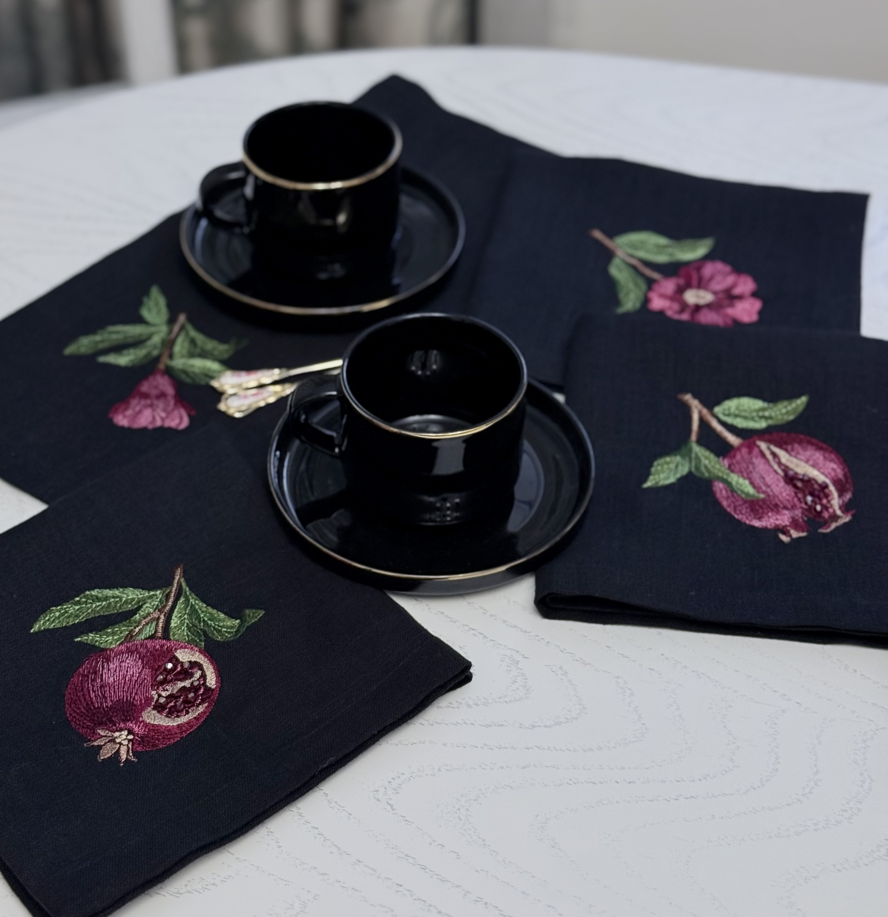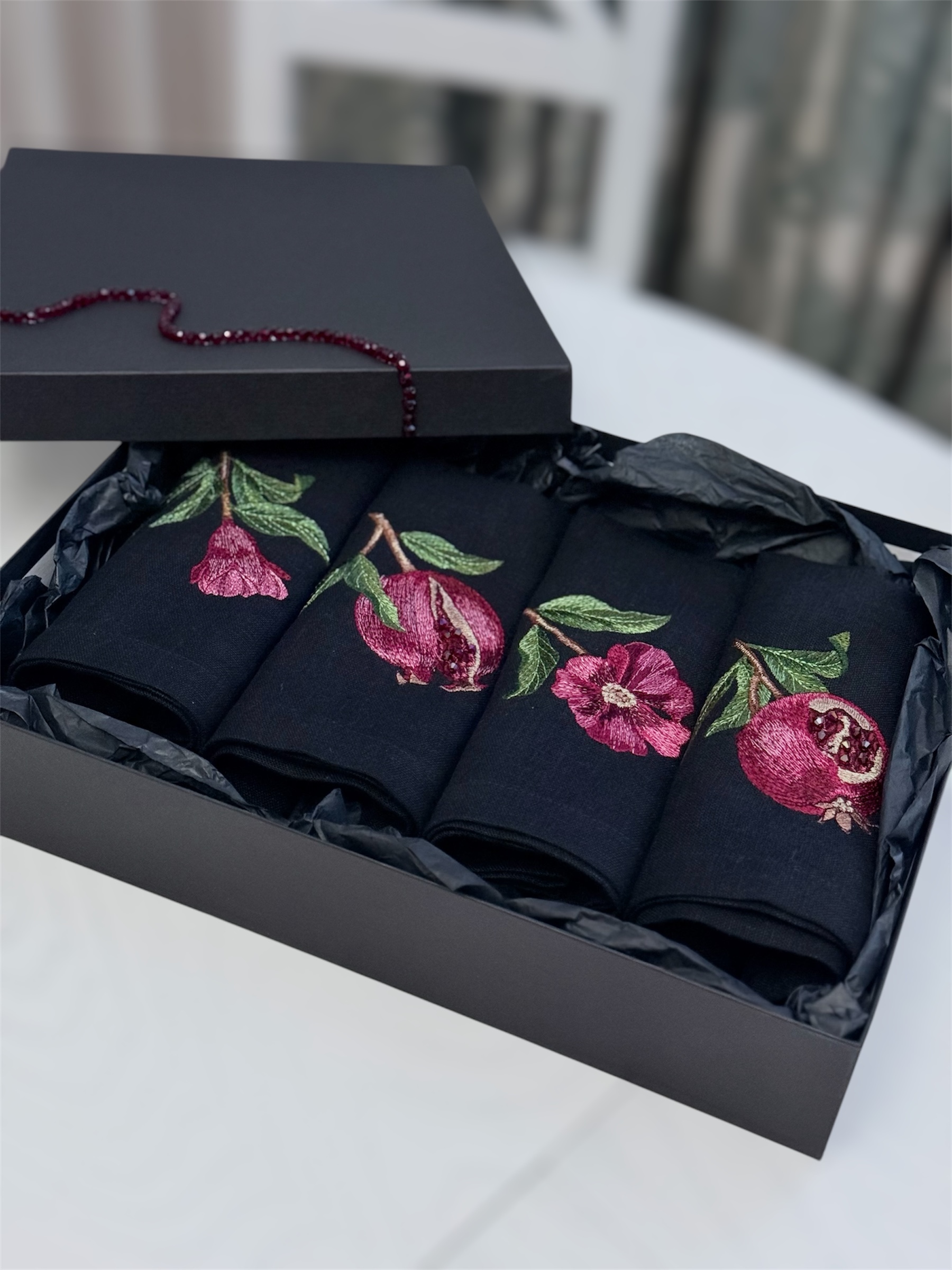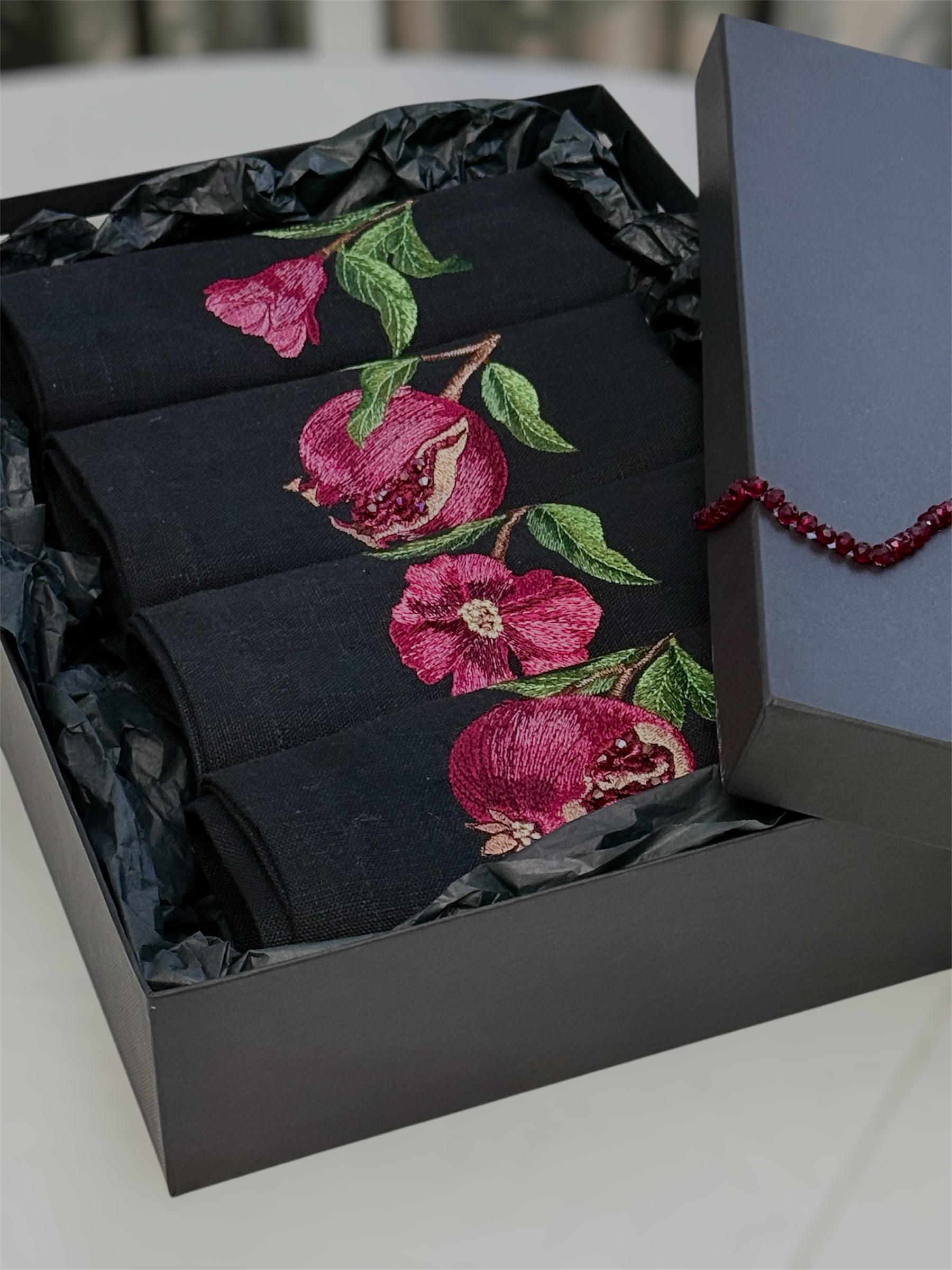 Set of four designs flowers and pomegranate fruits for small hoops is designed for embroidery on napkins, home textiles, clothes and accessories.