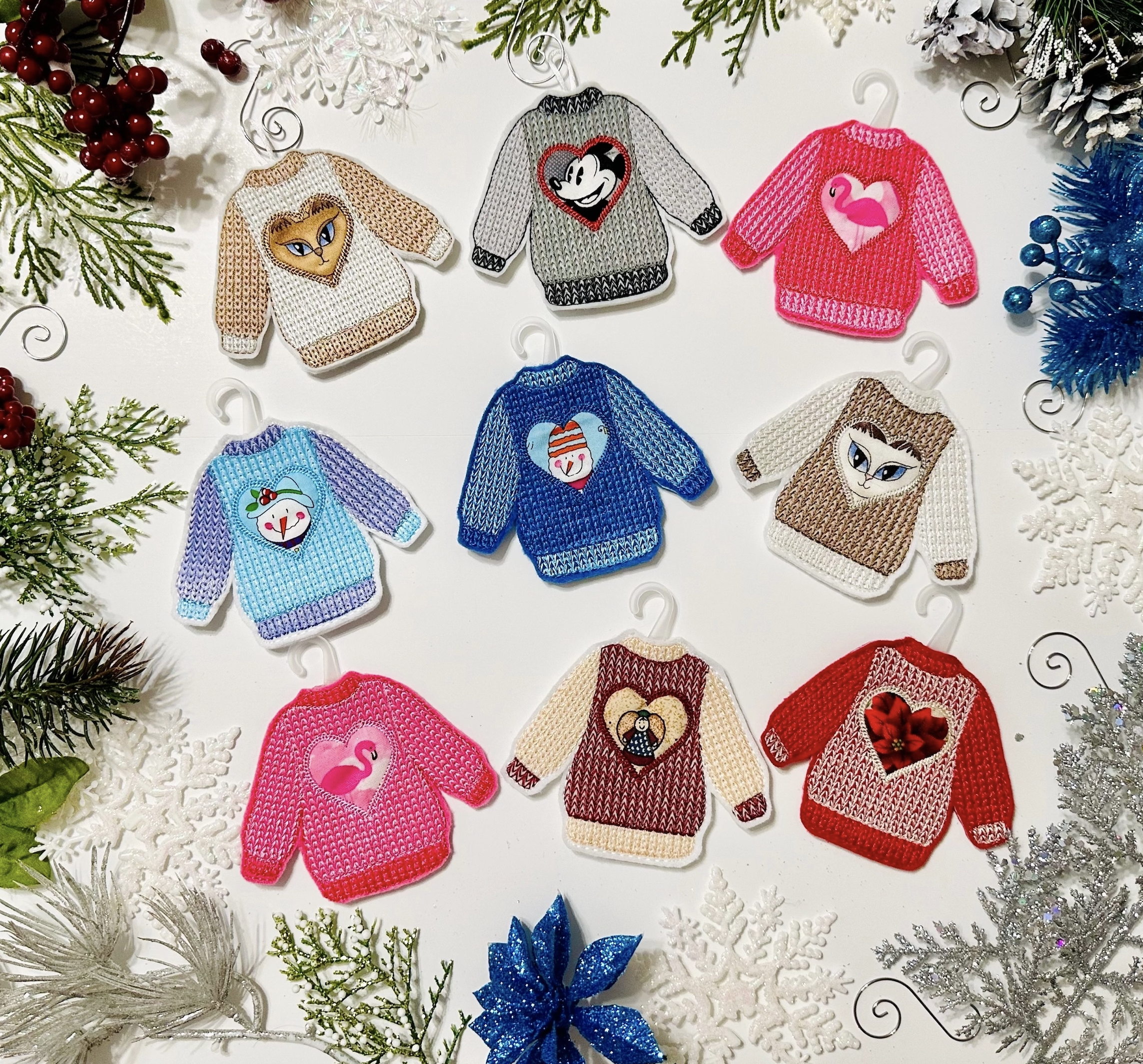 With the help of these designs, you will create a wonderful set of toys imitating knitted jumpers and sweaters, which will decorate your interior, New Year's tree or will become a wonderful gift for your loved ones.