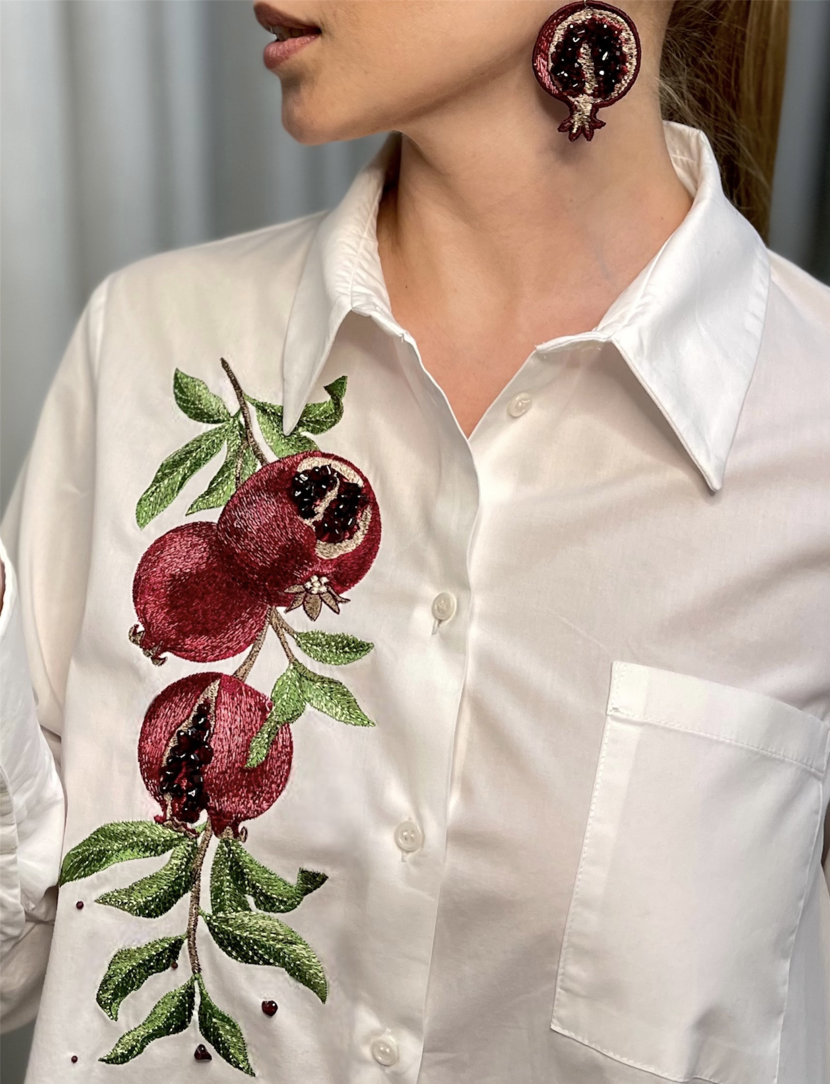 You can add real pomegranate stones by hand (sew them on with a colorless thread) to get a beautiful realistic embroidery, as shown in the photo.
