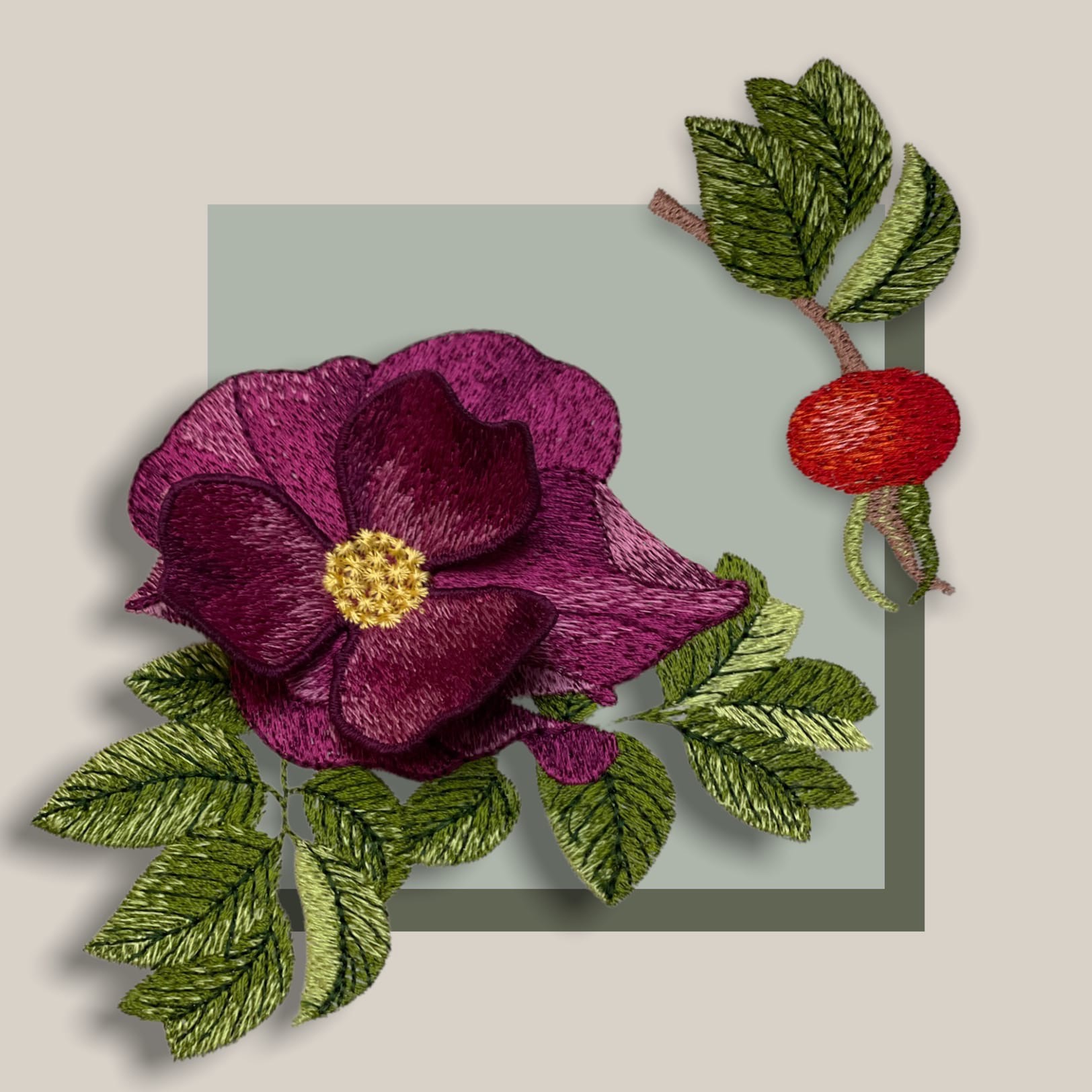 Шиповник с элементом 3Д набор дизайнов машинной вышивки