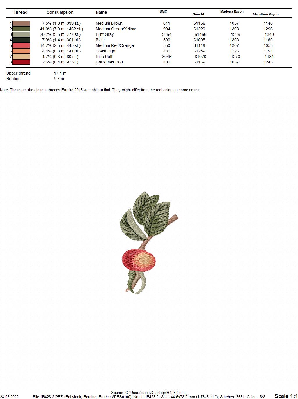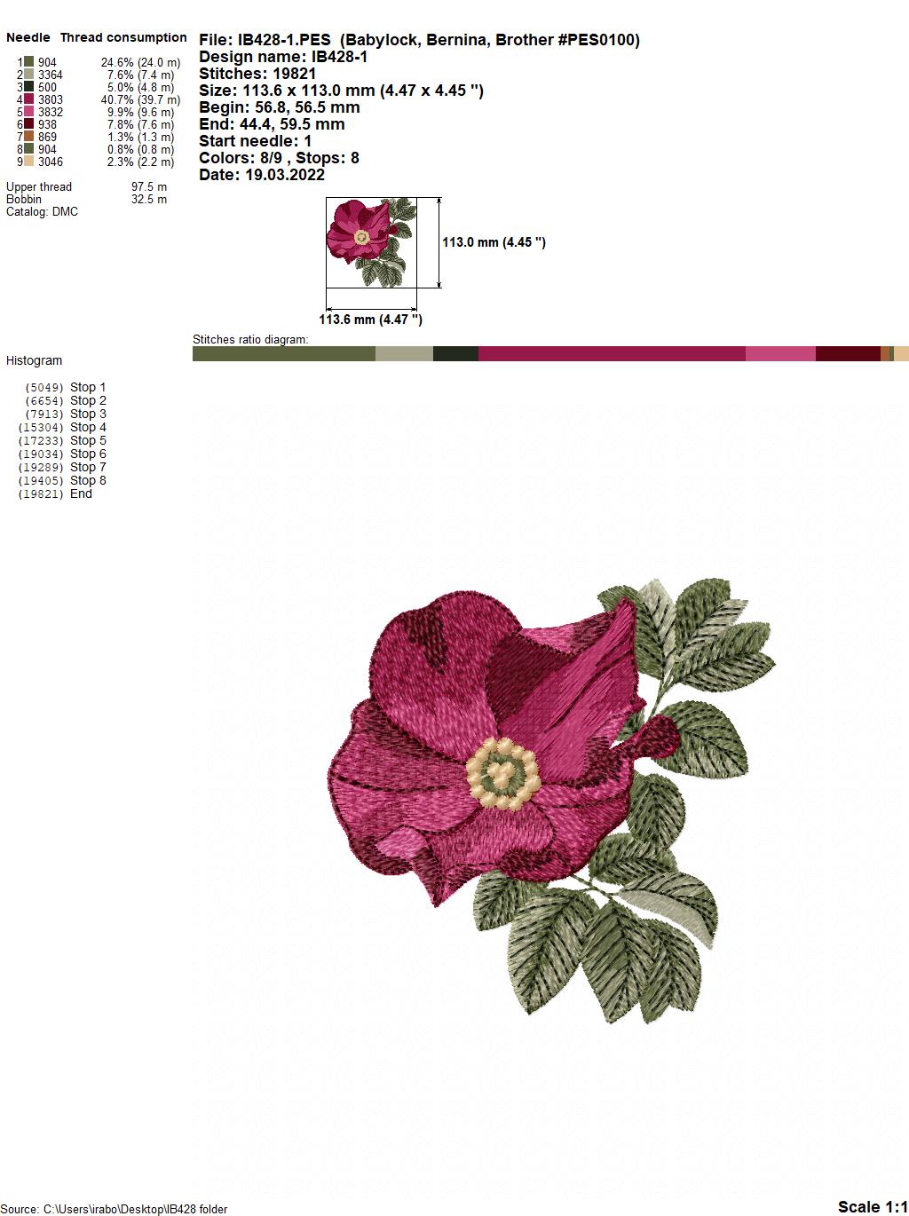 Размер дизайна (шиповник): 44,6 Х 78,9 мм (1,76 Х 3,11 дюйма)​