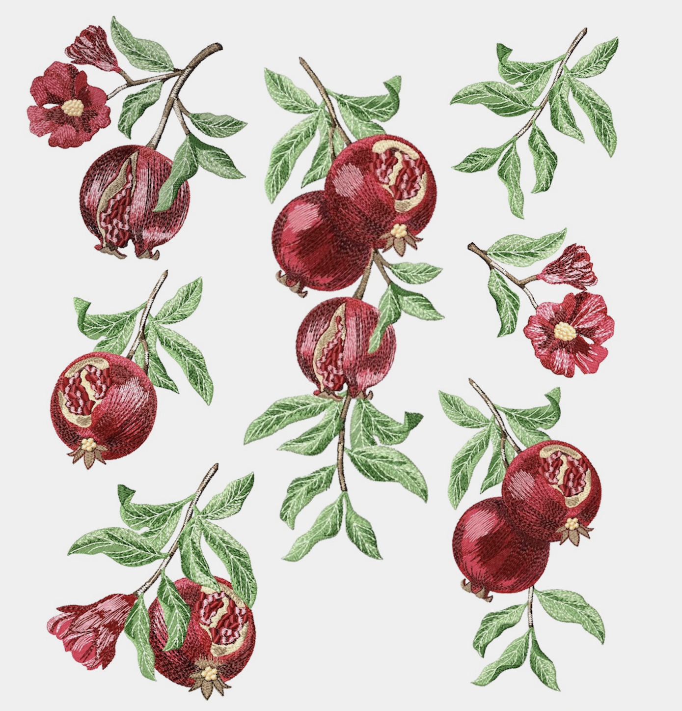 Набор дизайнов машинной вышивки в технике художественной глади Сочный гранат