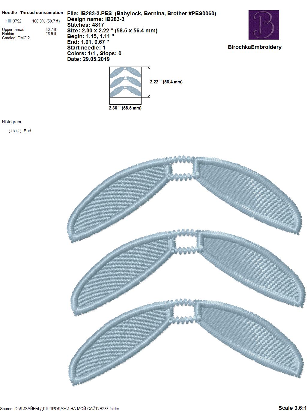 Размер дизайна крылья 2: 58,5 Х 56,4 мм (2,3 х 2,22 дюйма)