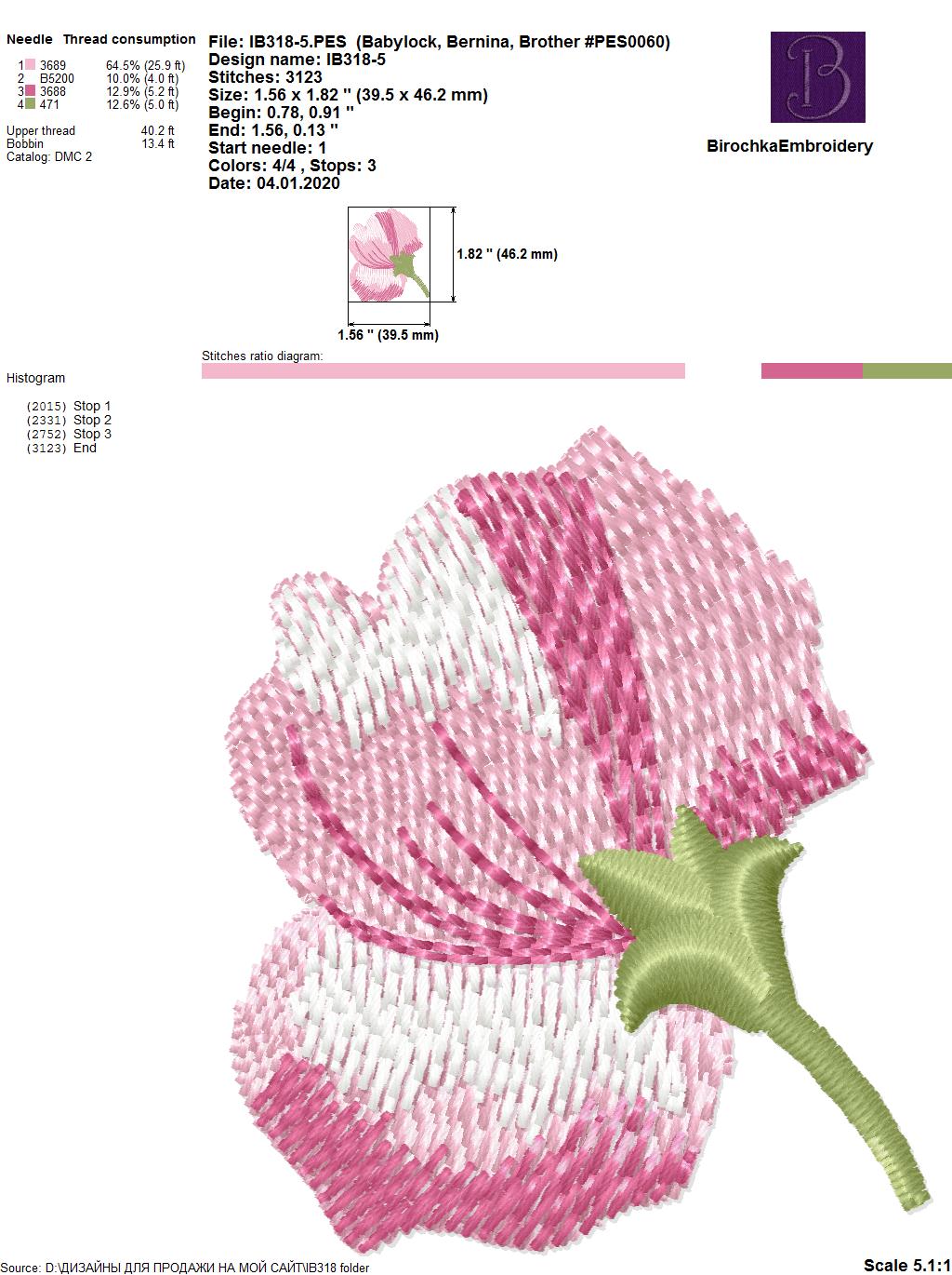 Design size IB318-5(flower): 39,5 Х 46,2 mm (1,56 Х 1,82 inches )