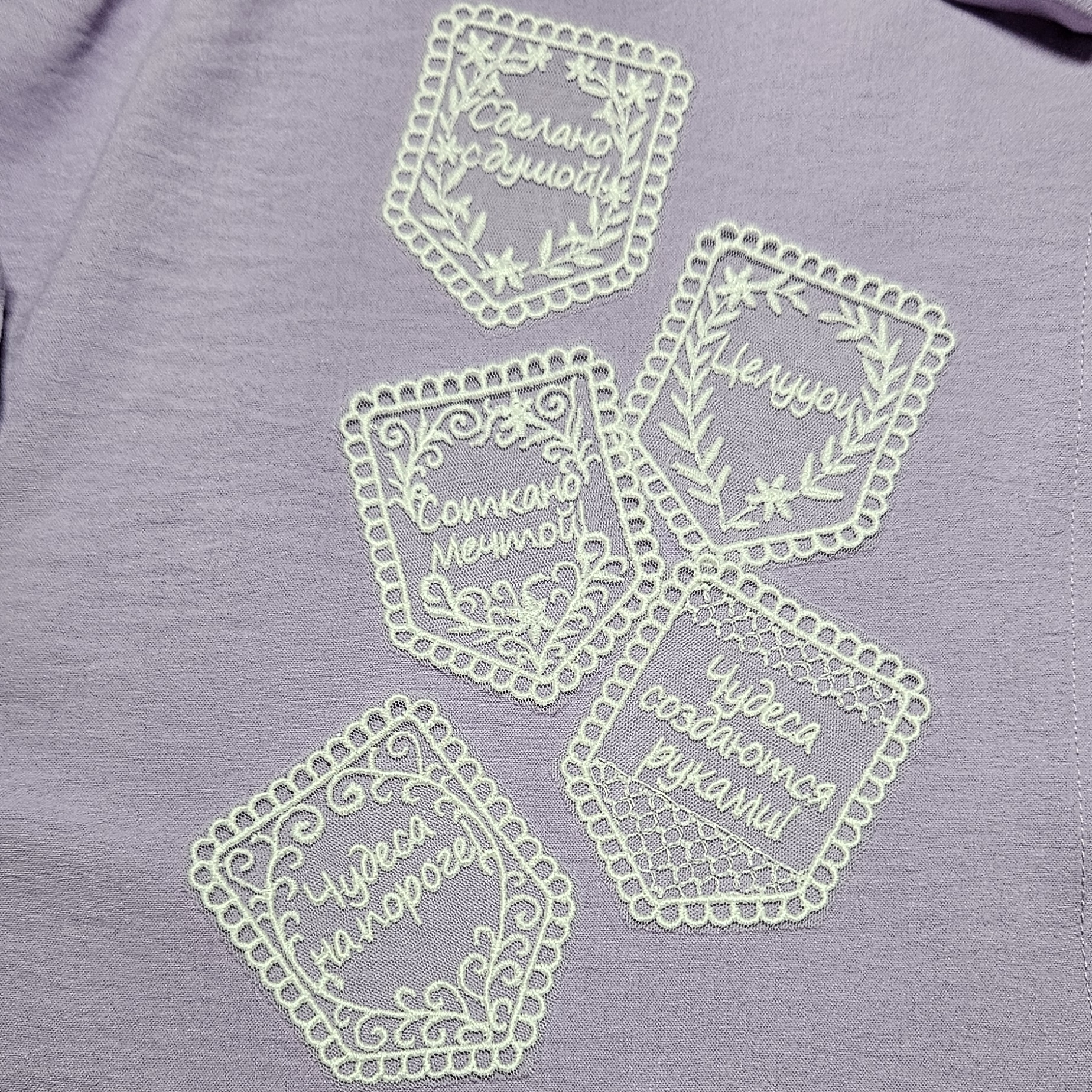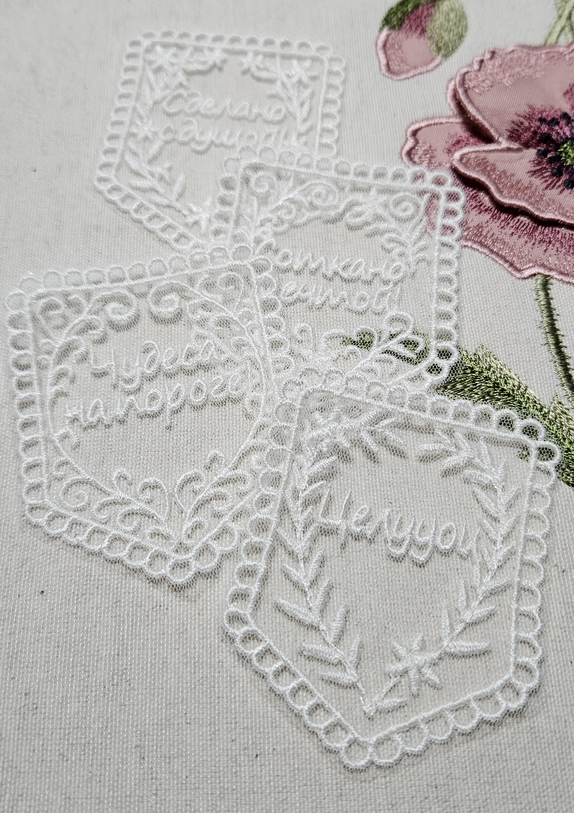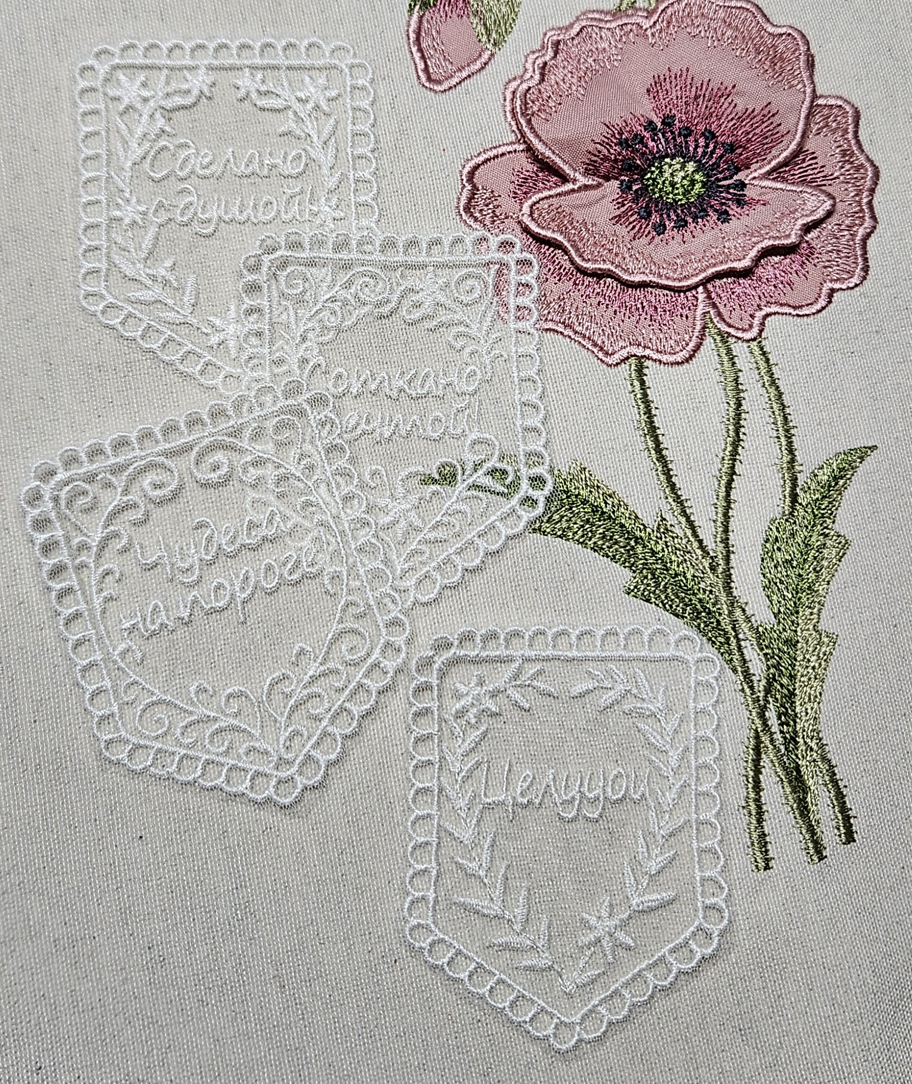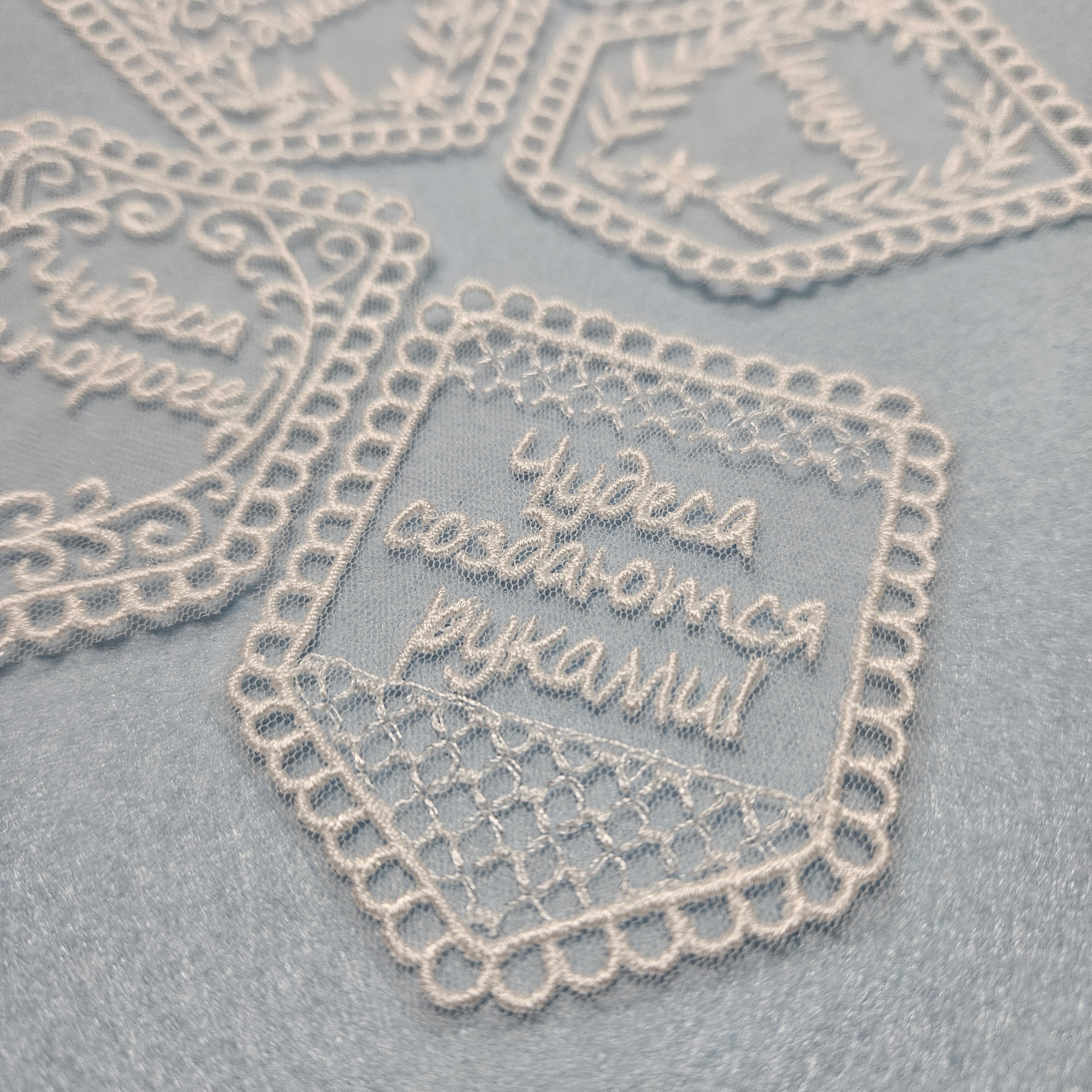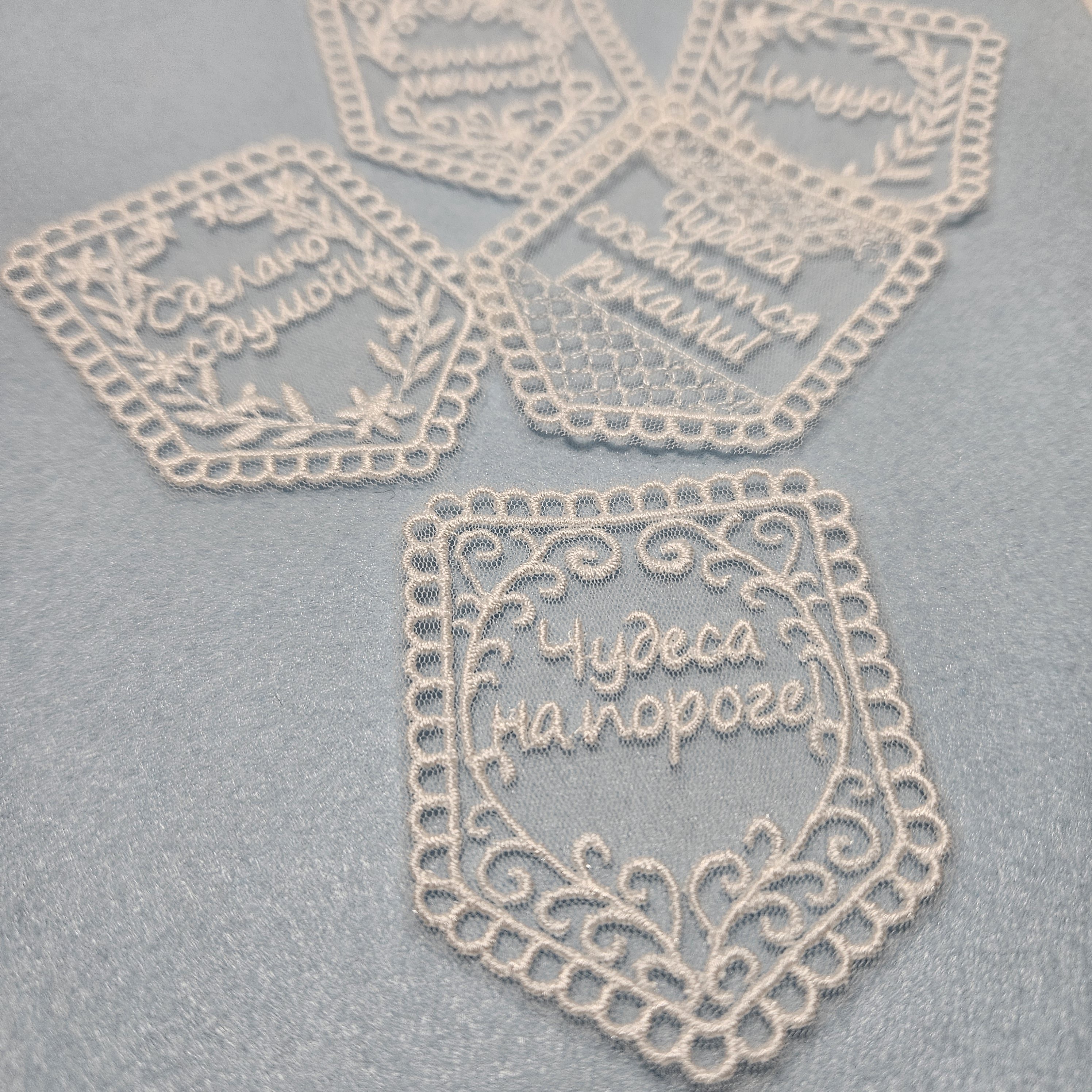 The set of labels and tags for handmade items, featuring machine embroidery designs