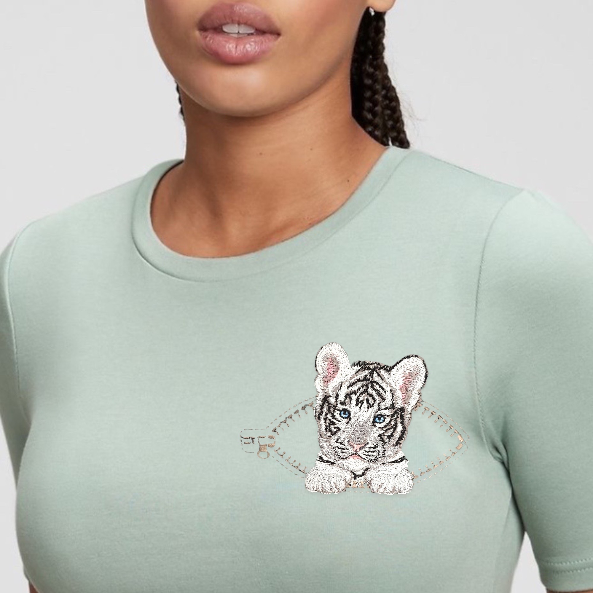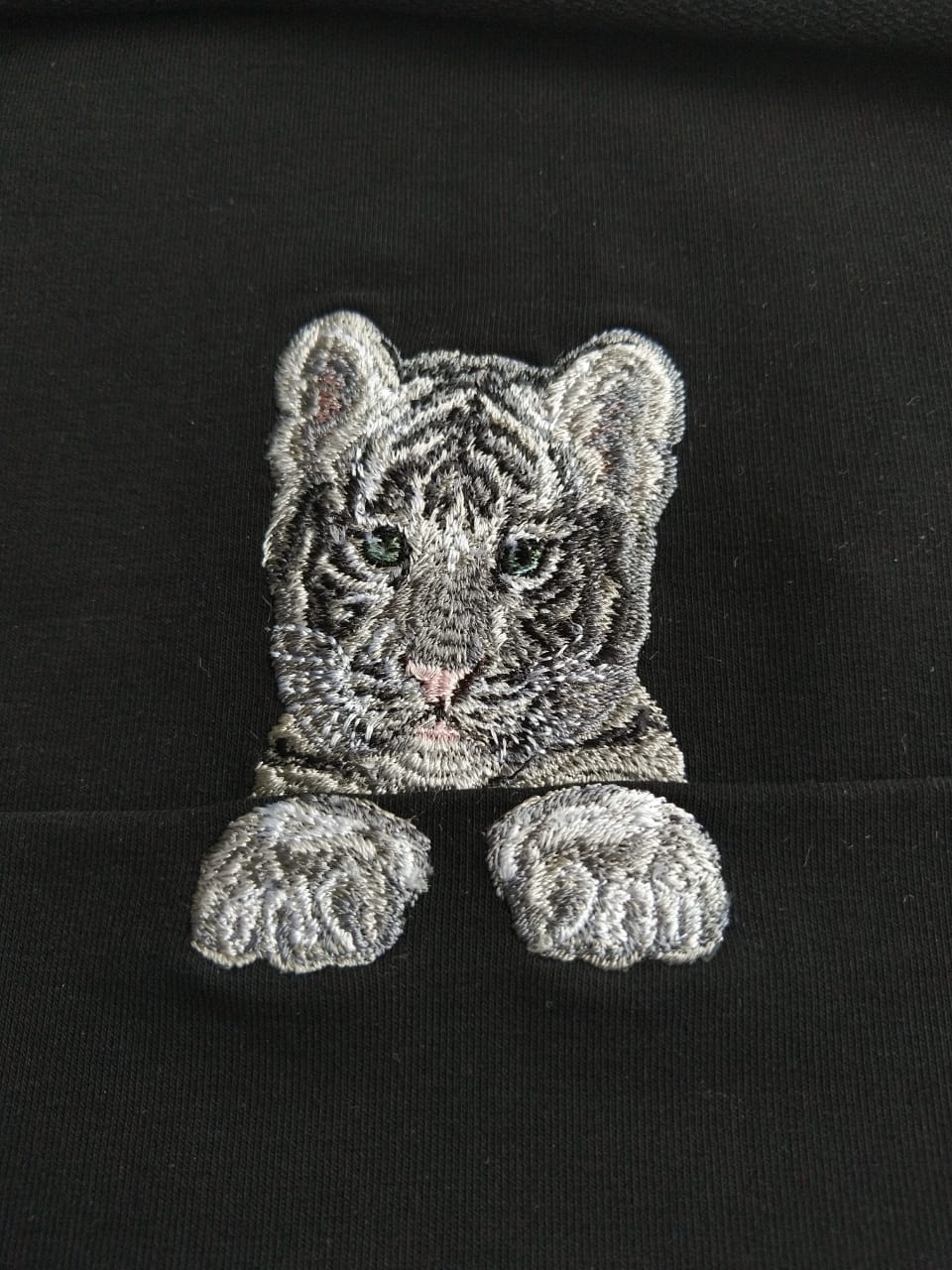 Миниатюрный реалистичный дизайн «Тигренок с отдельными лапками серый» для вышивки в кармашке или на отвороте