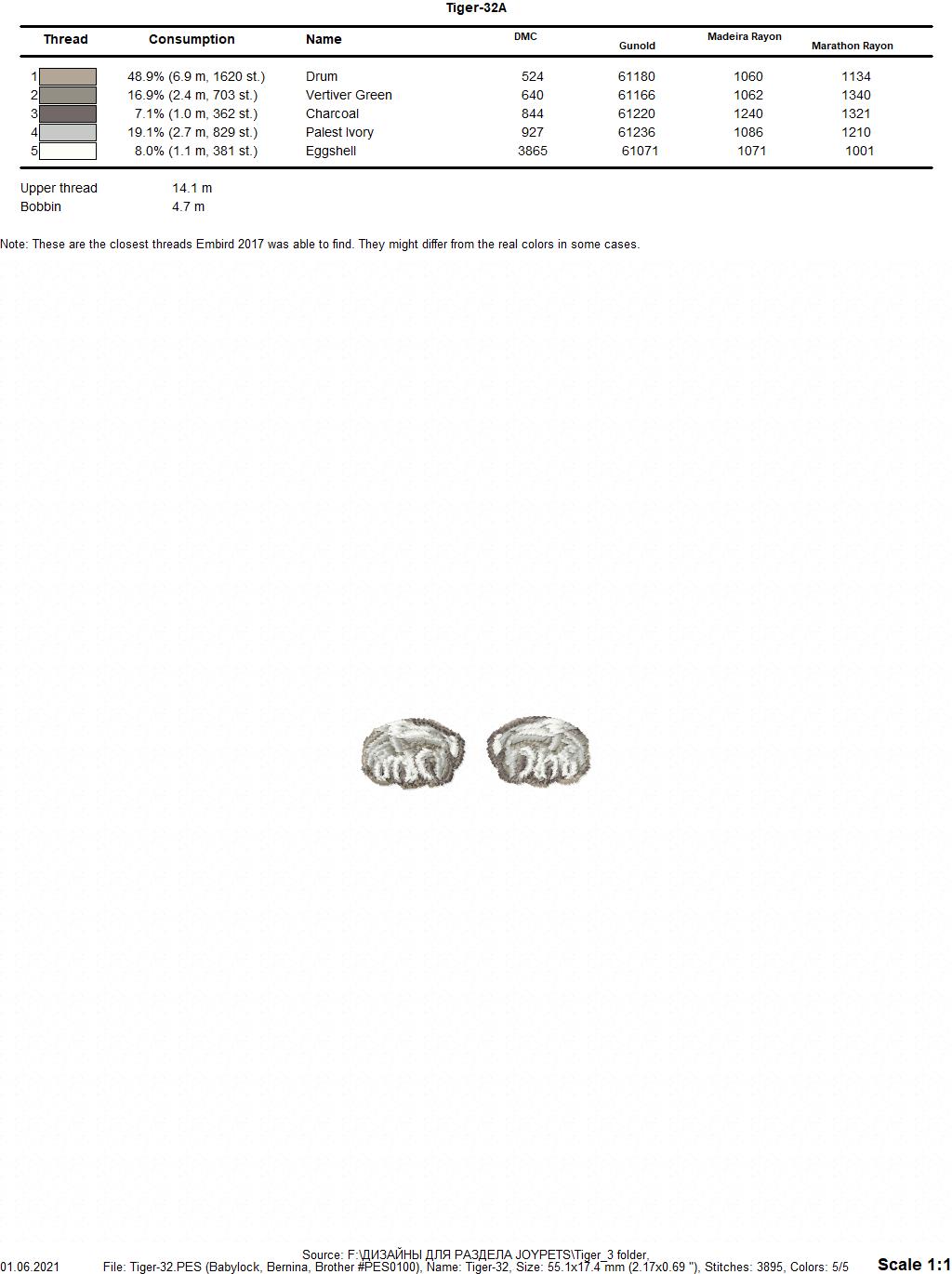 Размер дизайна Tiger3: 54,6 Х 68,8 мм (2,15 Х 2,71 дюйма)