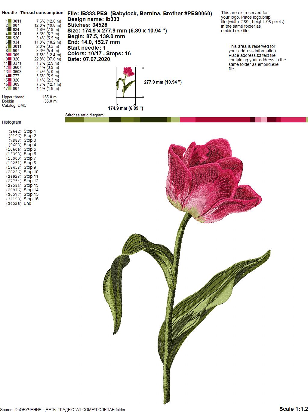 Размер дизайна IB333: 174,9 Х 277,9 мм (6,89 Х 10,94 дюйма)