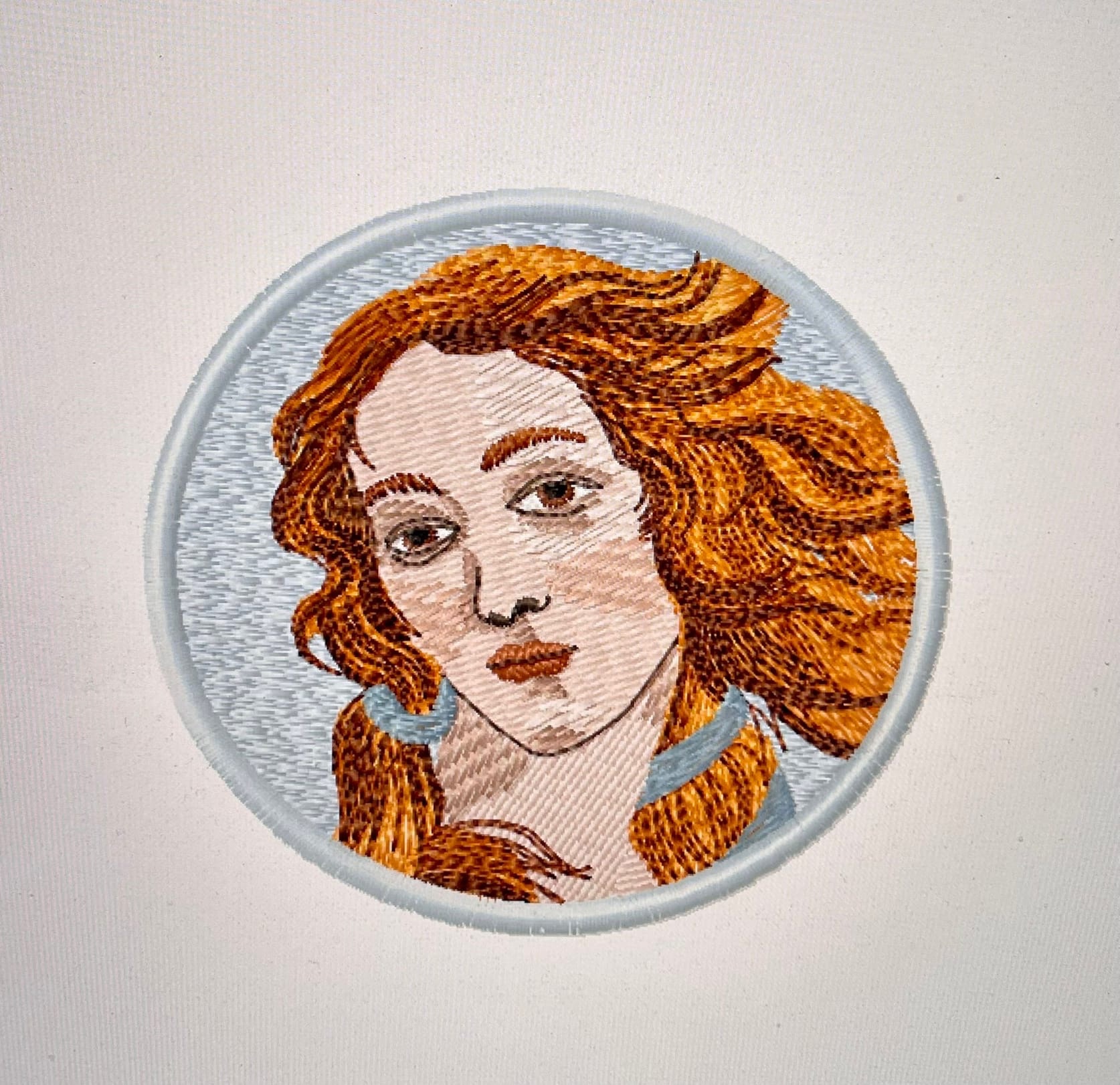 Венера миниатюрный дизайн машинной вышивки по фрагменту картины Боттичелли Рождение Венеры