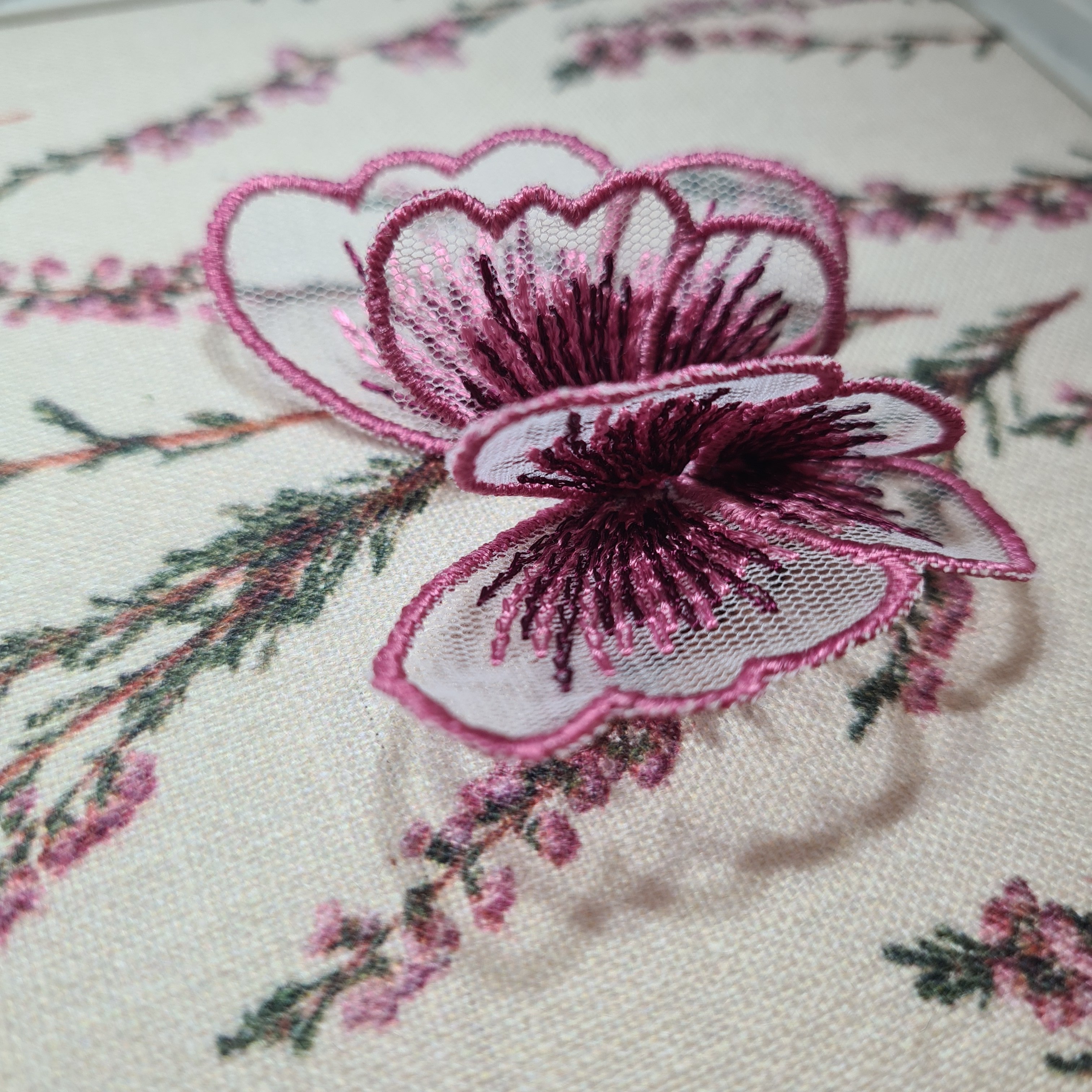 3D embroidery is applied onto fabric using a water-soluble stabilizer, and creates beautiful 3D accessories for your projects!