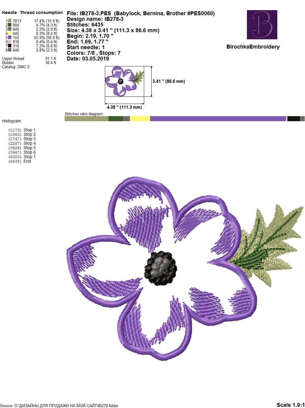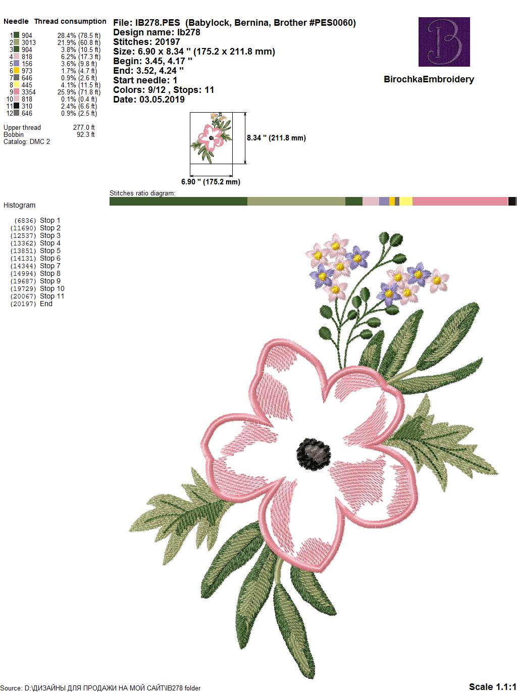 Design size Big Flower for hoops: 180 Х 300 mm (7 X 11,8 inches), 200 X 260 mm (7,8 X 10 inches)