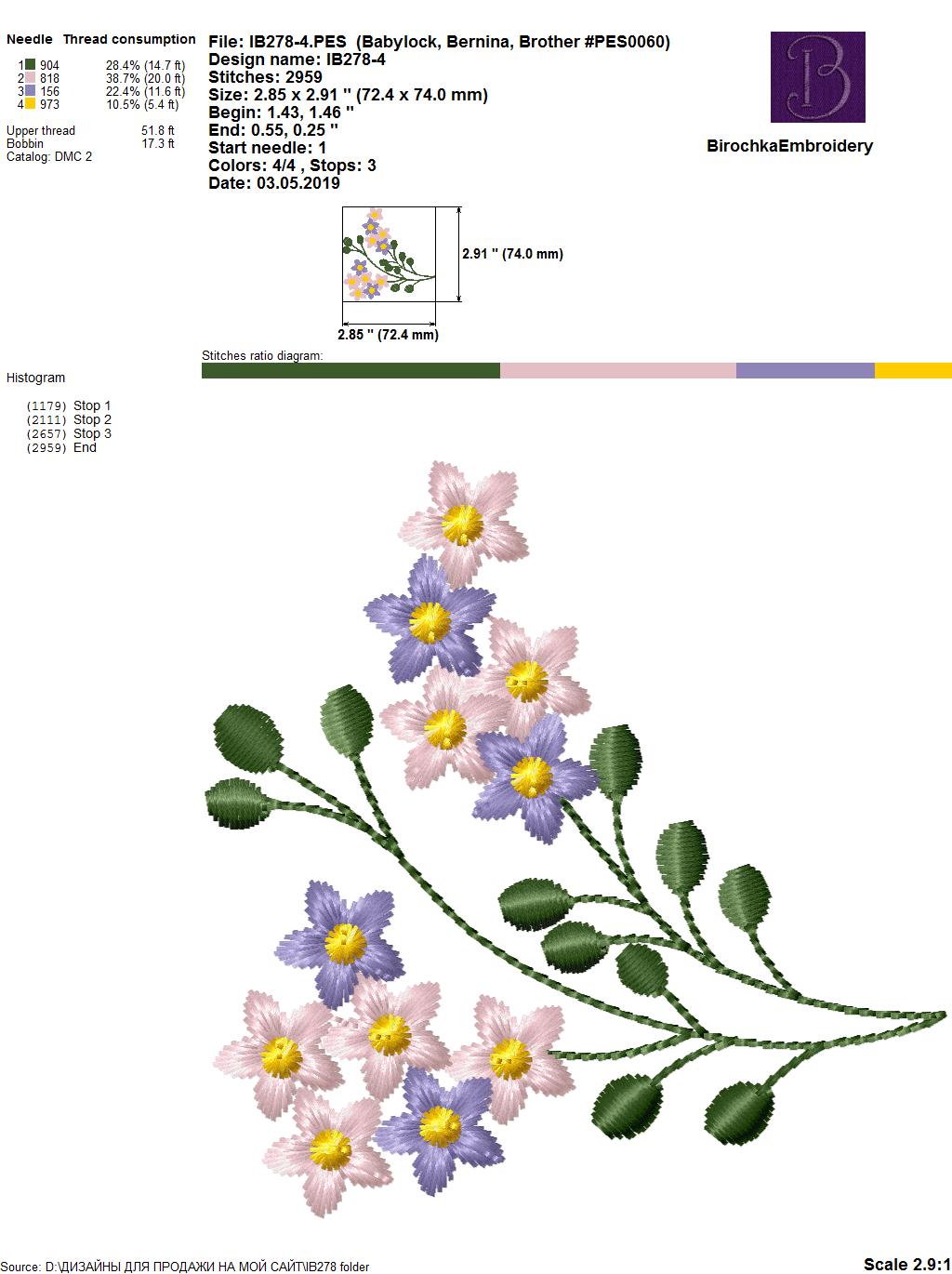 Design size Buds and Branch for hoops: 100 Х 100 мм (4 Х 4 inches)